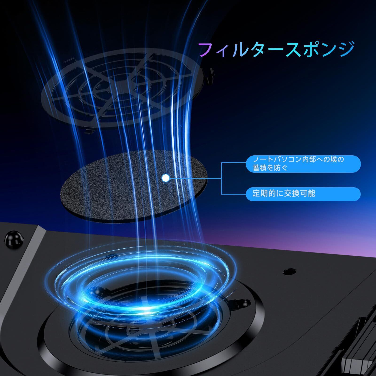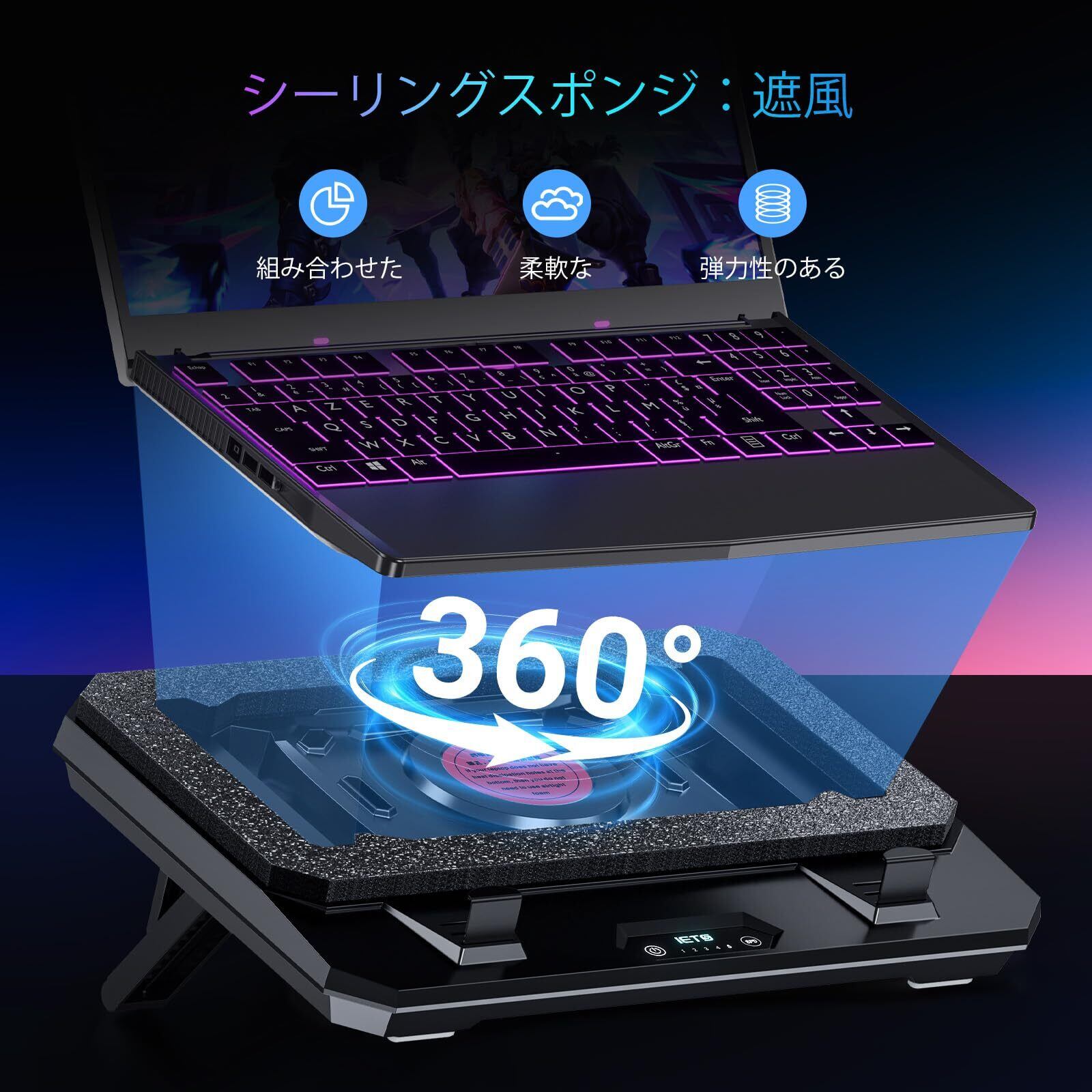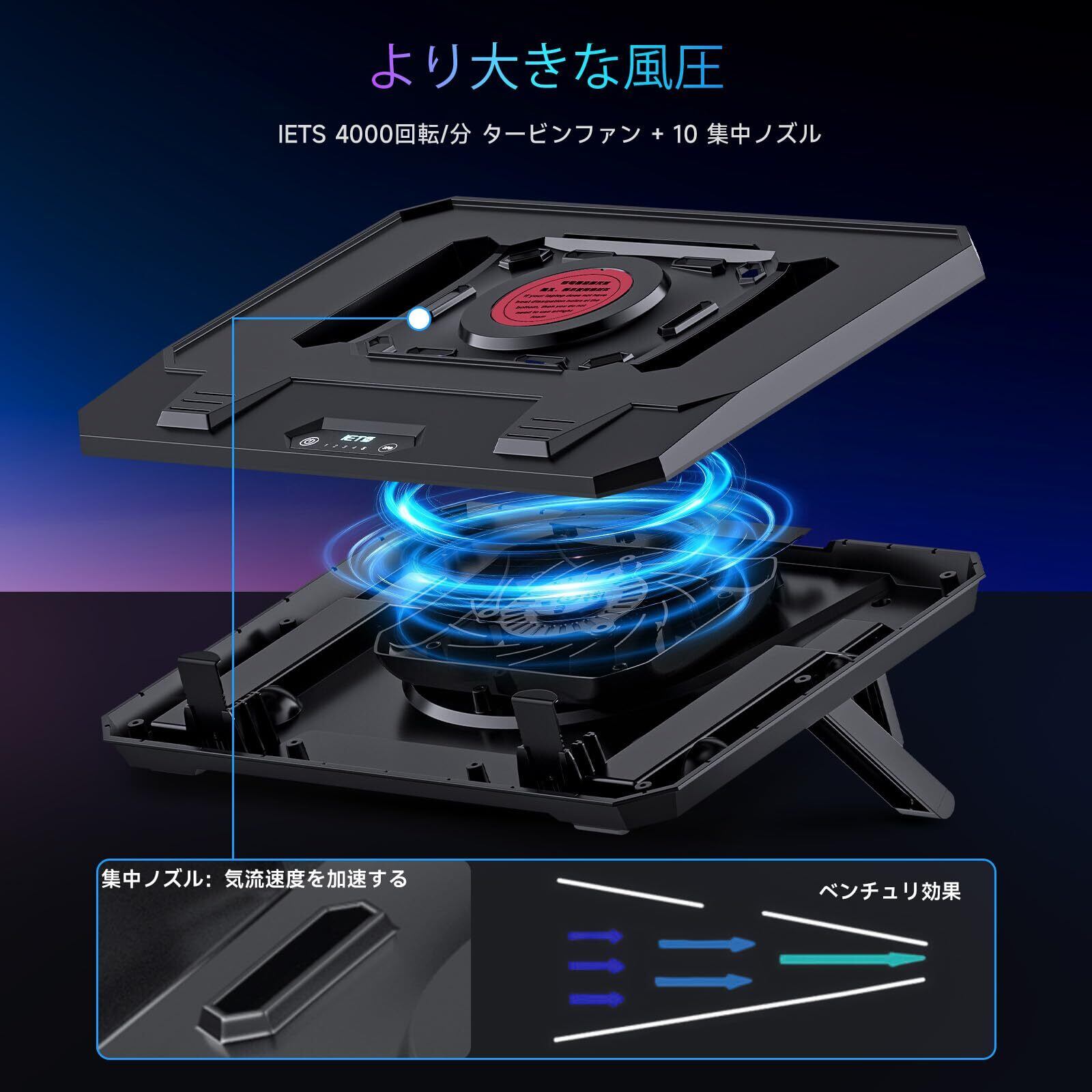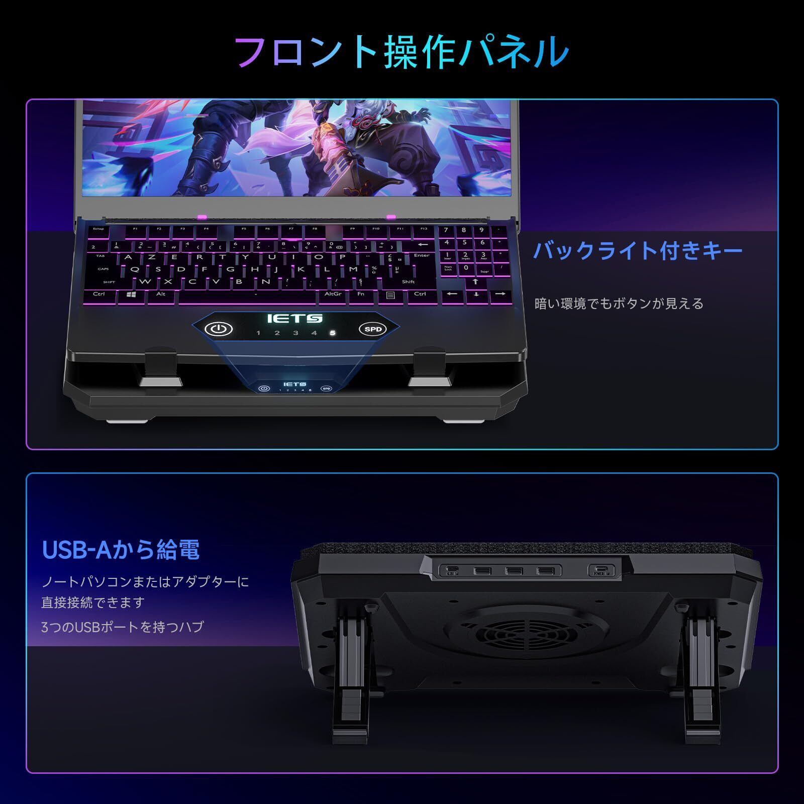 IETSノートPC冷却パッド アップグレード版 調整可能スタンド付き ターボブースト冷却機能搭載で急速冷却を実現 10~17インチゲーミングノートPC対応 柔軟なシーリングリング採用 空気ろ過機能とUSBハブを装備 (ブラック)