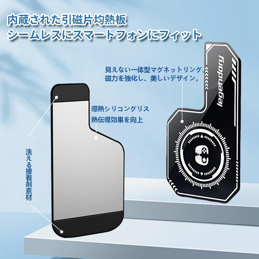 1.スマートフォン専用:スマートフォンに特化した設計で、過熱問題を効果的に解決し、様々なスマートフォンモデルに対応します。磁性デザインにより、付属の冷却ファンを簡単に吸着でき、放熱面積を拡大し、放熱速度を高めます。注意:購入前に商品サイズ60*106*2.8 mmが携帯電話のサイズを超えるかどうかを確認してください。