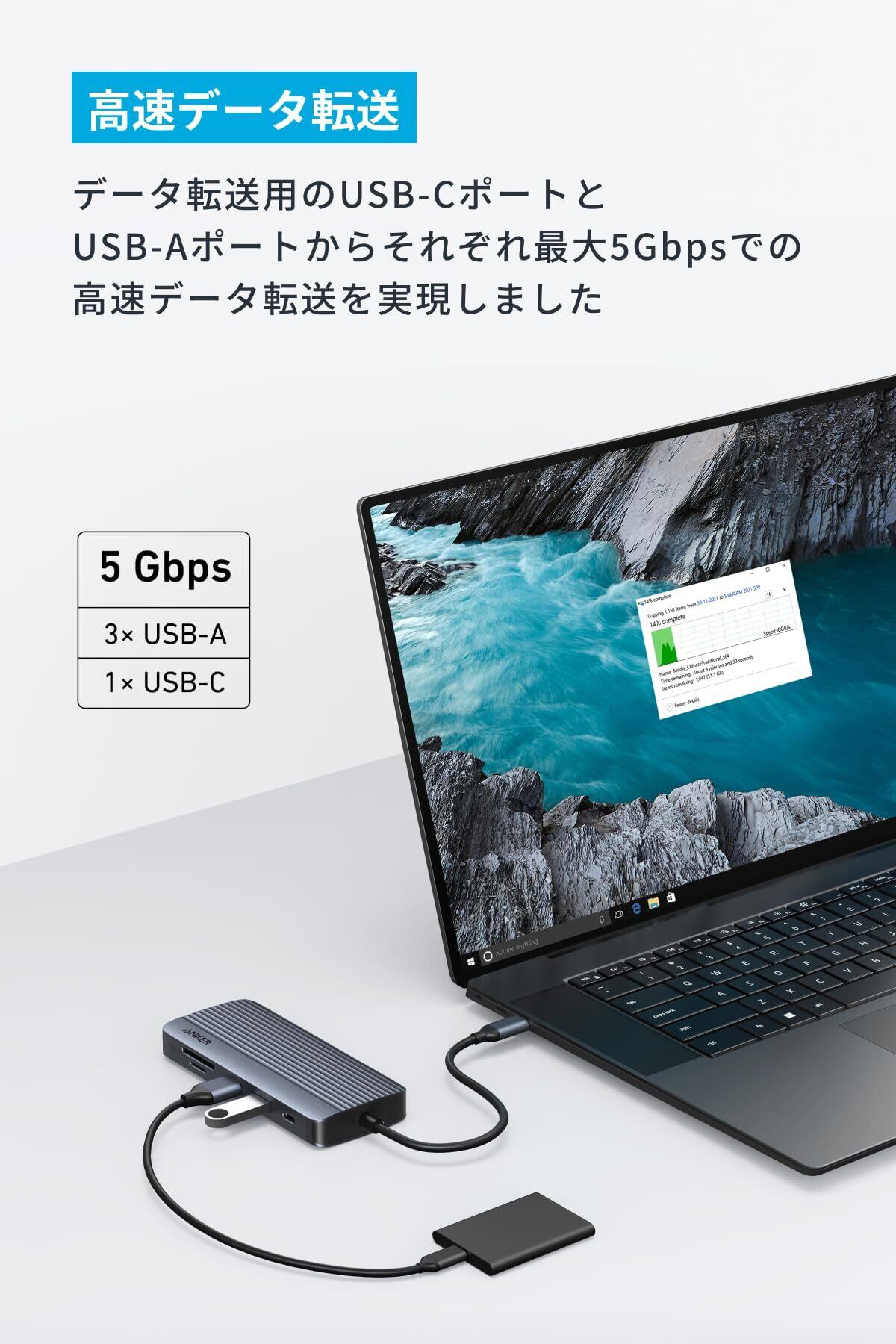 高速データ転送:USB-Cポートと3つのUSB-Aポートから最大5Gbpsでの高速データ転送を実現しました。高速データ転送で即座に同期することが可能です。