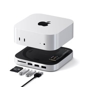 SATECHI Mac Mini M4 ハブ & スタンド NVMe SSD エンクロージャー搭載|M4 Mac Mini ドック 最大10Gbps USB-A x2・USB-Aデータポート・SDカードリーダー対応(M4対応)- シルバー
