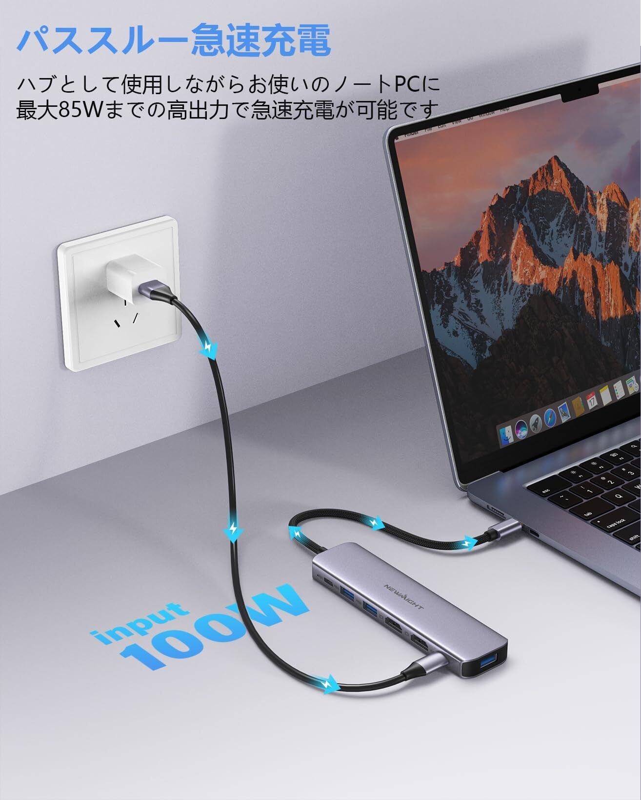 USB C ハブ hdmi 2つ Dual Display ドッキングステーション 7in1 MST デュアル 4K HDMI 拡張 リプル ディスプレイ 2畫面 HDMI*2、高速USB 3.0*3、type c データ伝送、USB-C 100W充電、MacBook Pro/Airなど対応