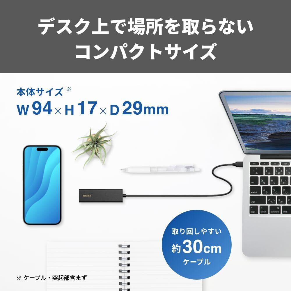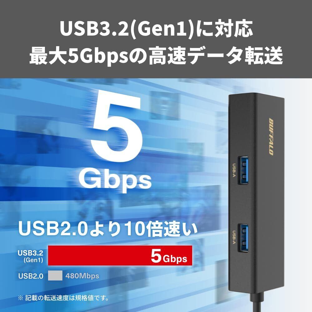 バッファロー Giga対応 USB Type-A ドッキングステーション LANアダプター 有線LAN USBハブ USB3.2(Gen1) 日本メーカー ブラック LUD-U3-AU101BK/N