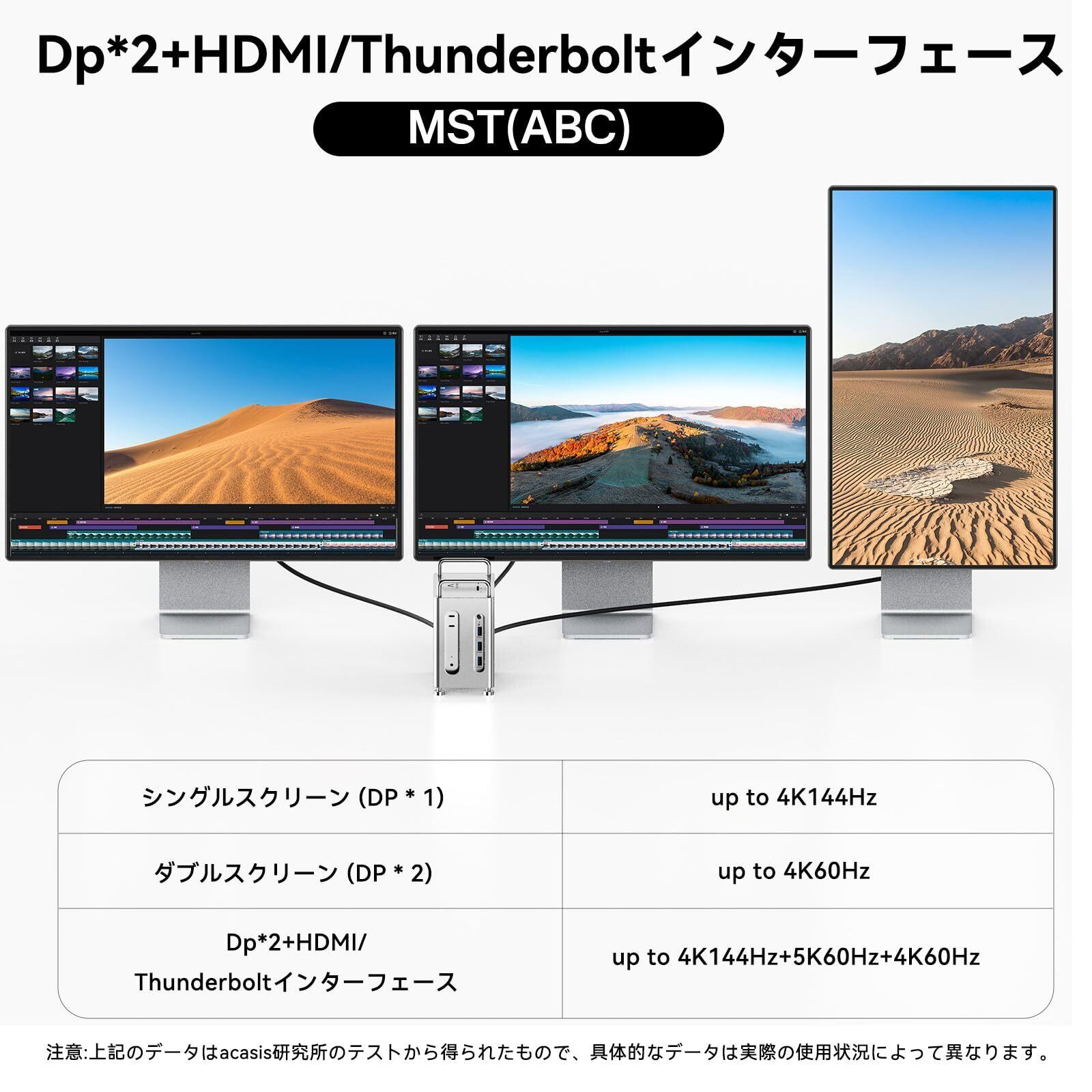 【真のトリプルディスプレイ生産性を解き放つ】このアルミ製 Mac mini ドッキングステーションは、デュアル DisplayPort (シングルスクリーン最大 4K@144Hz、デュアルスクリーン最大 4K@60Hz) と Mac Mini の HDMI/Thunderbolt ポートを搭載し、シームレスな MST 拡張を実現 - 3 画面オフィス/クリエーションを簡単に実現します。ビデオ編集者、ビジネス向けマルチスクリーンオフィス、クリエイティブデザイン、e スポーツ、ライブストリーミングユーザーに最適です。️注意: デュアル DisplayPort モニターを使用する場合、RAID 0 SSD の速度は、帯域幅の共有により、読み取り 2,472 MB/秒 / 書き込み 2,825 MB/秒 (シングルモニター) から読み取り 1,601 MB/秒 / 書き込み 3,112 MB/秒 (デュアルモニター) に低下する場合があります。