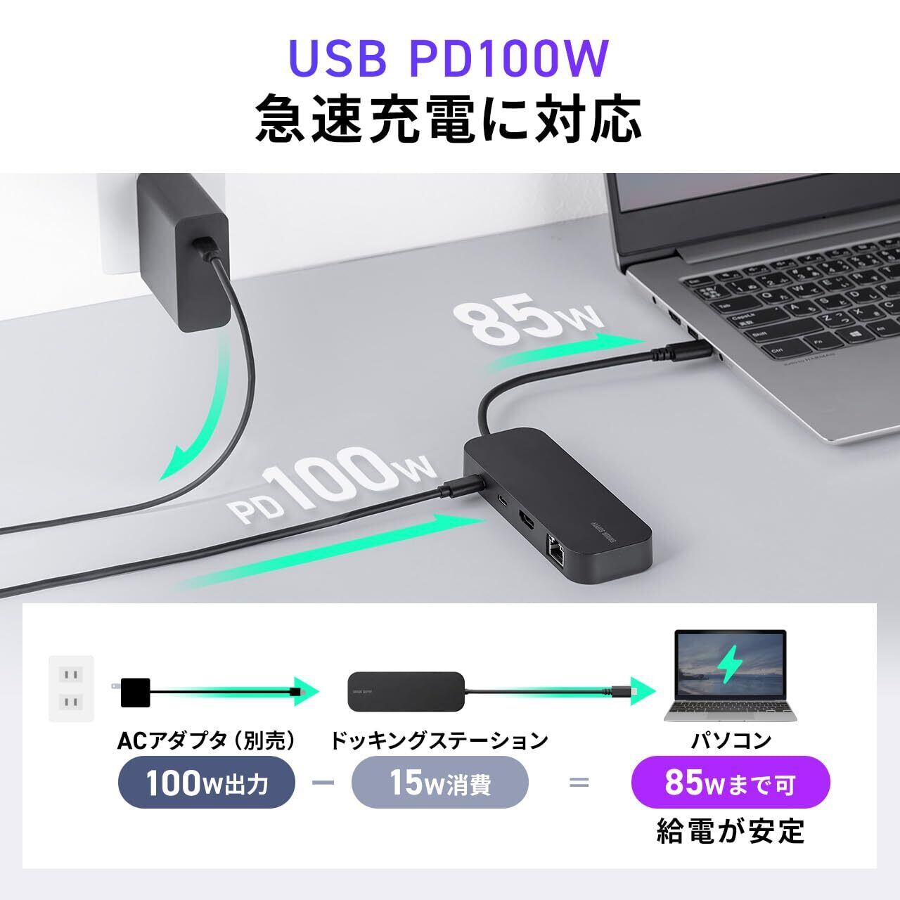 サンワダイレクト Type-C ドッキングステーション HDMI 4K/30Hz|LAN・SD/microSD・Type-A×2・USB-C×2・PD100W急速充電対応|8-in-1 USBハブ|400-DKM2BK