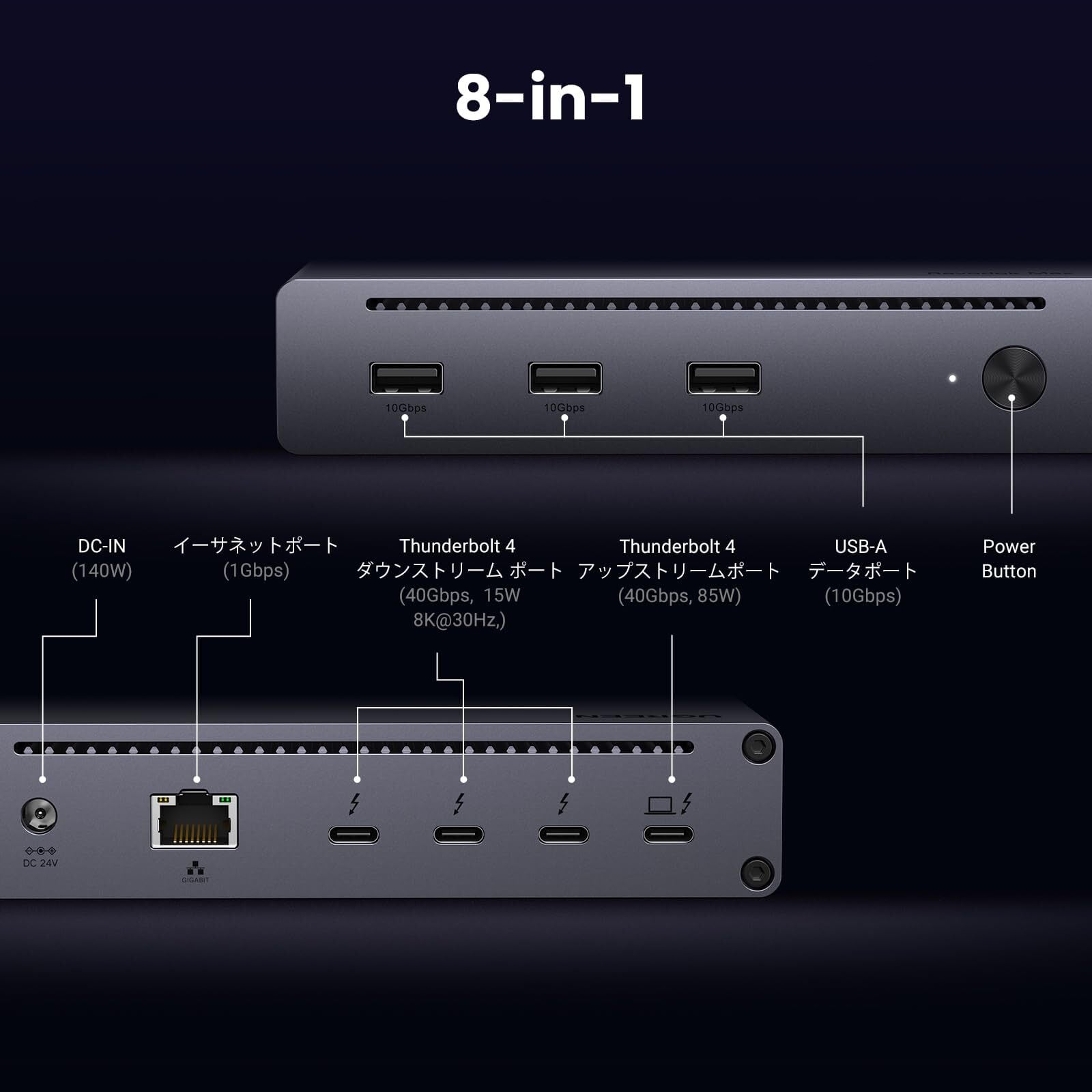 ■多彩な接続を実現する『UGREEN Revodok Max 208 Thunderbolt 4ドッキングステーション』!この高機能ドッキングステーションは、データ転送と充電の両方を一挙にサポートし、あなたの作業環境を一新します。