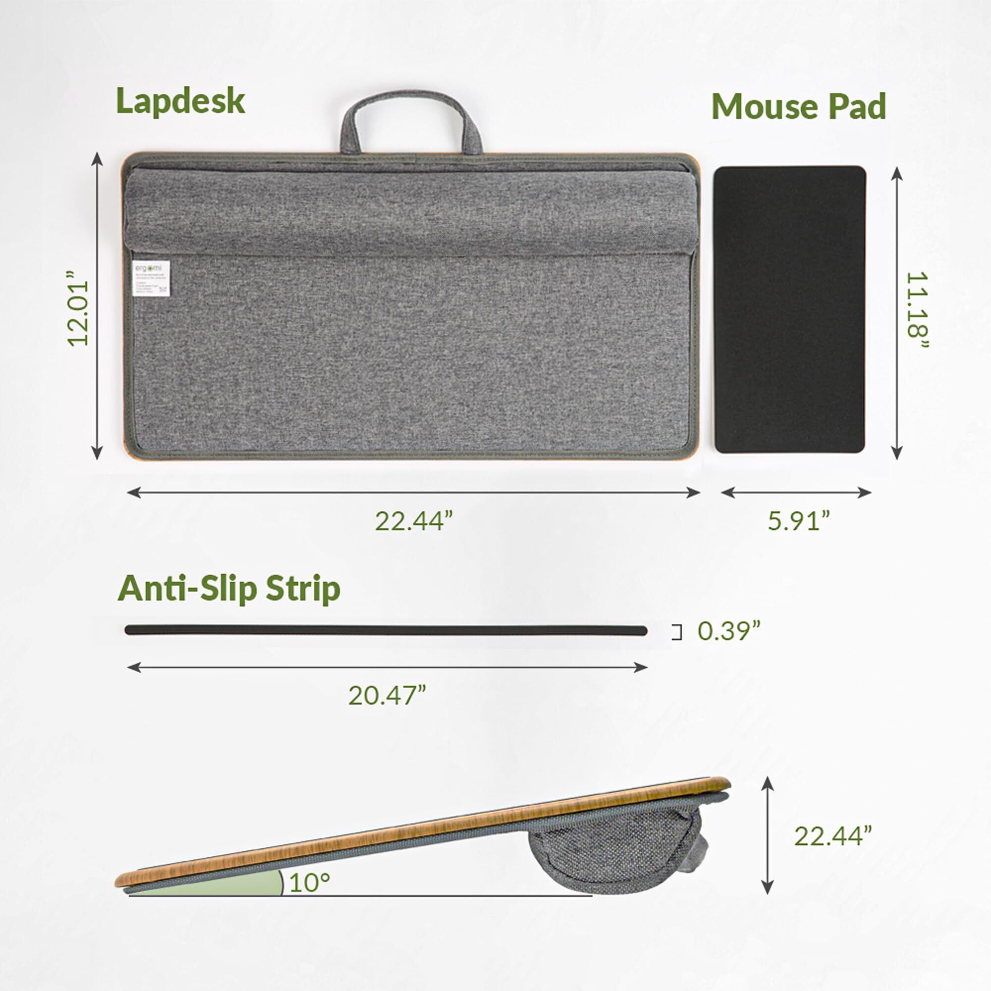 滑り止めストリップ&便利なマウスパッド - 滑り止めストリップと取り外し可能なマウスパッドが両側に備わっているこのラップデスクは、マウス、タブレット、その他のアイテムを使用している場合でも、必需品を所定の位置に保持します。