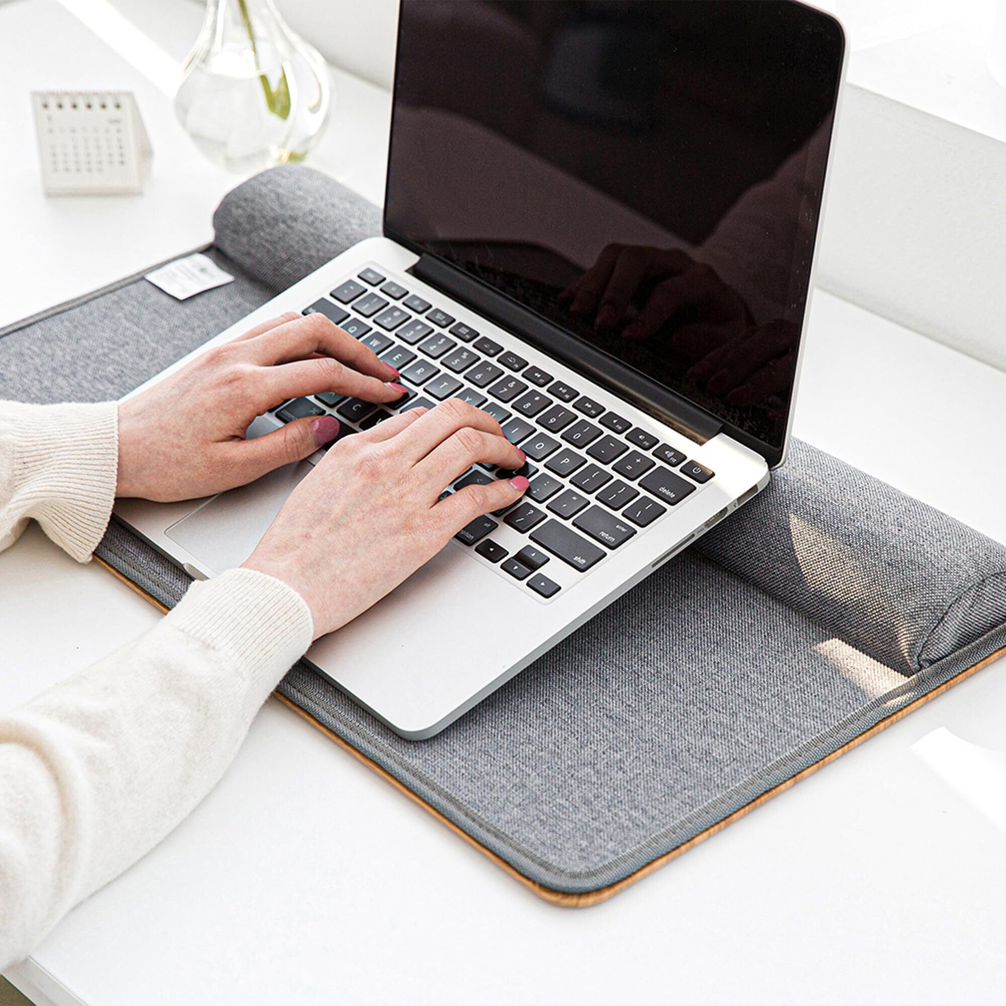 手首パッド内蔵で人間工学に基づいた快適性 - 内蔵リストパッドを備えたこのラップデスクは、手首を快適に保ち、ノートパソコンを安全に固定し、滑りを防ぎながら負担を軽減します。