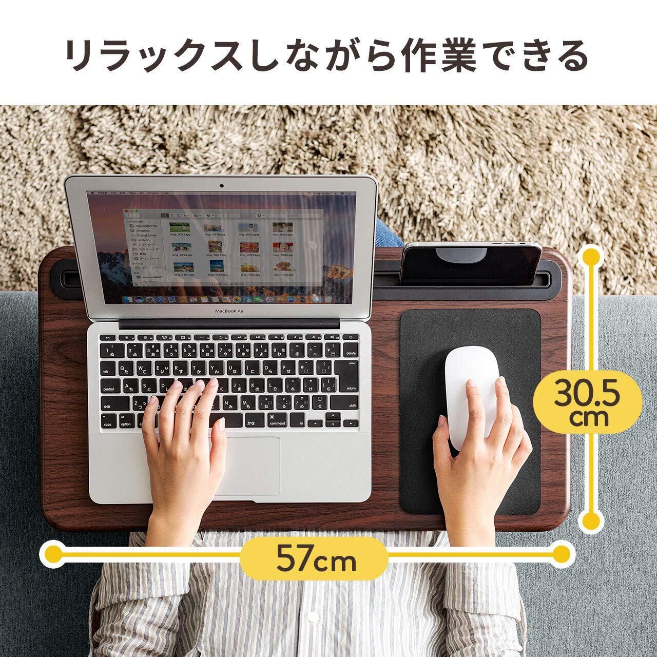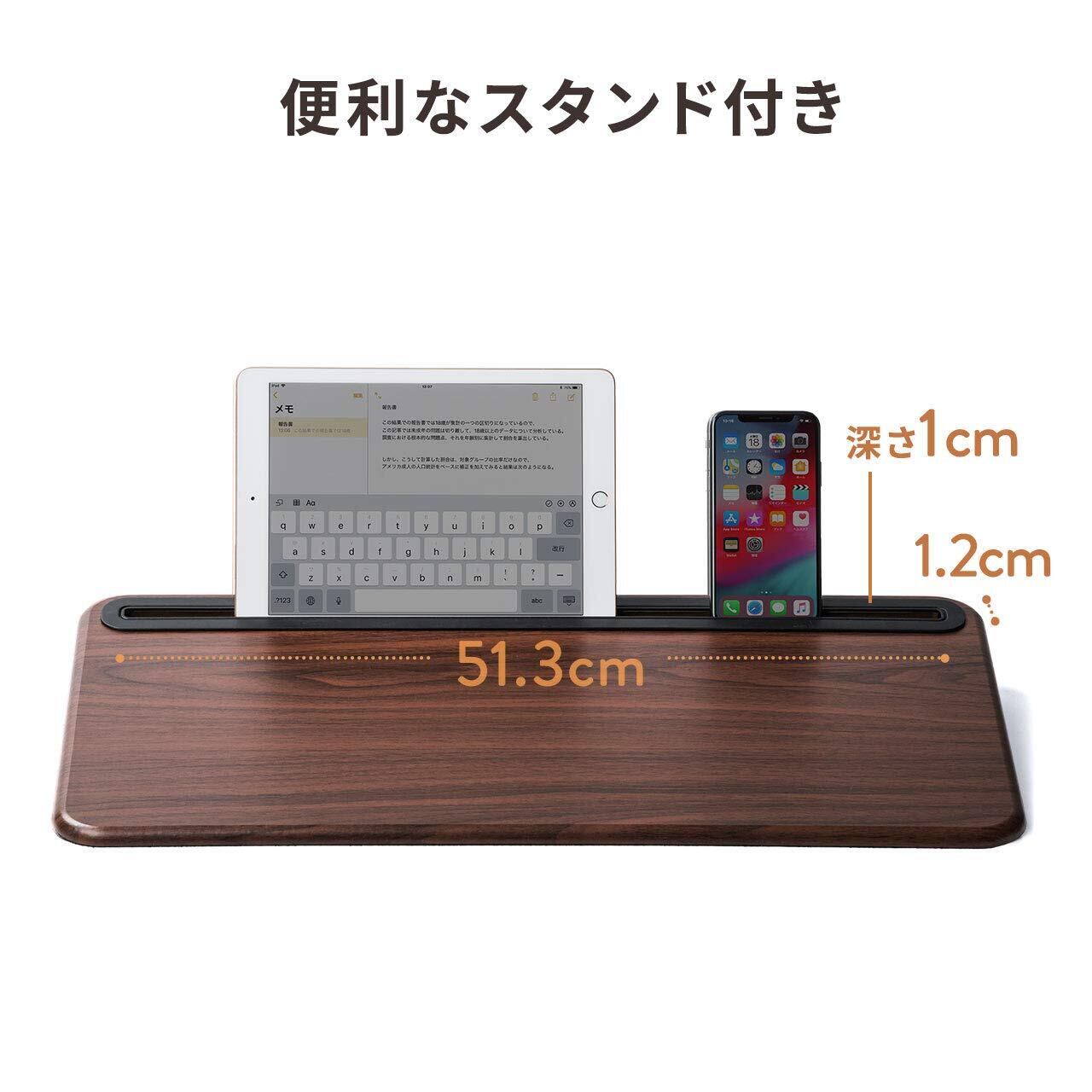 サンワダイレクト ひざ上テーブル ノートPC/タブレット用 15.6型対応 マウスパッド・スマホ/タブレットスタンド・クッション付き 木目調 200-HUS008