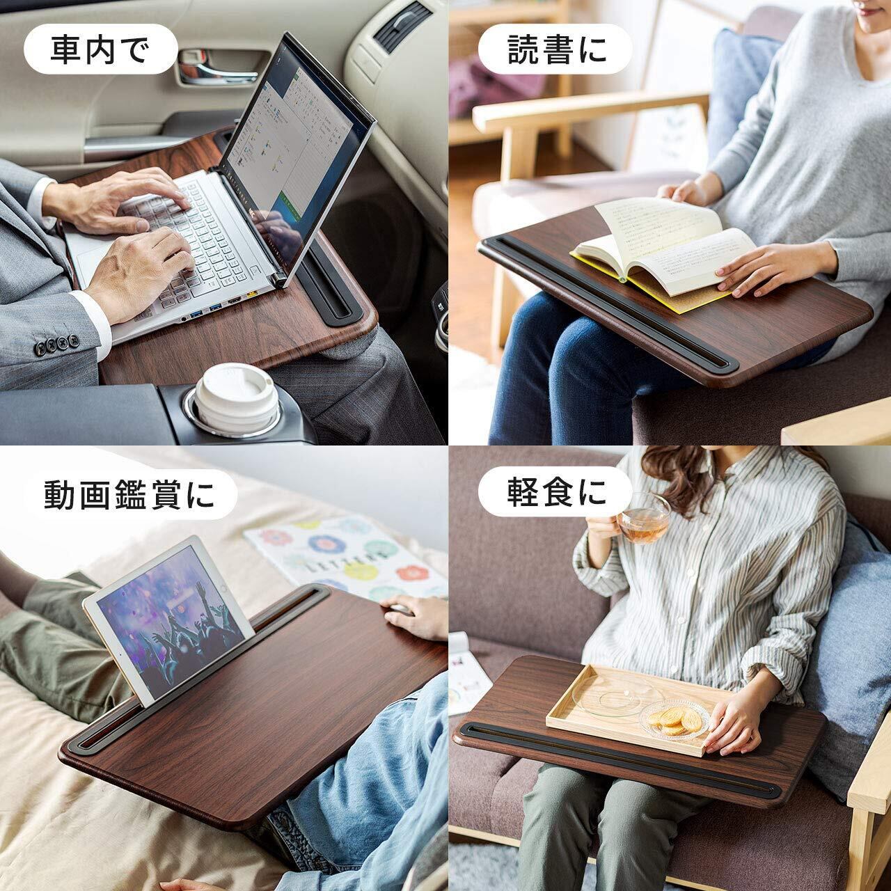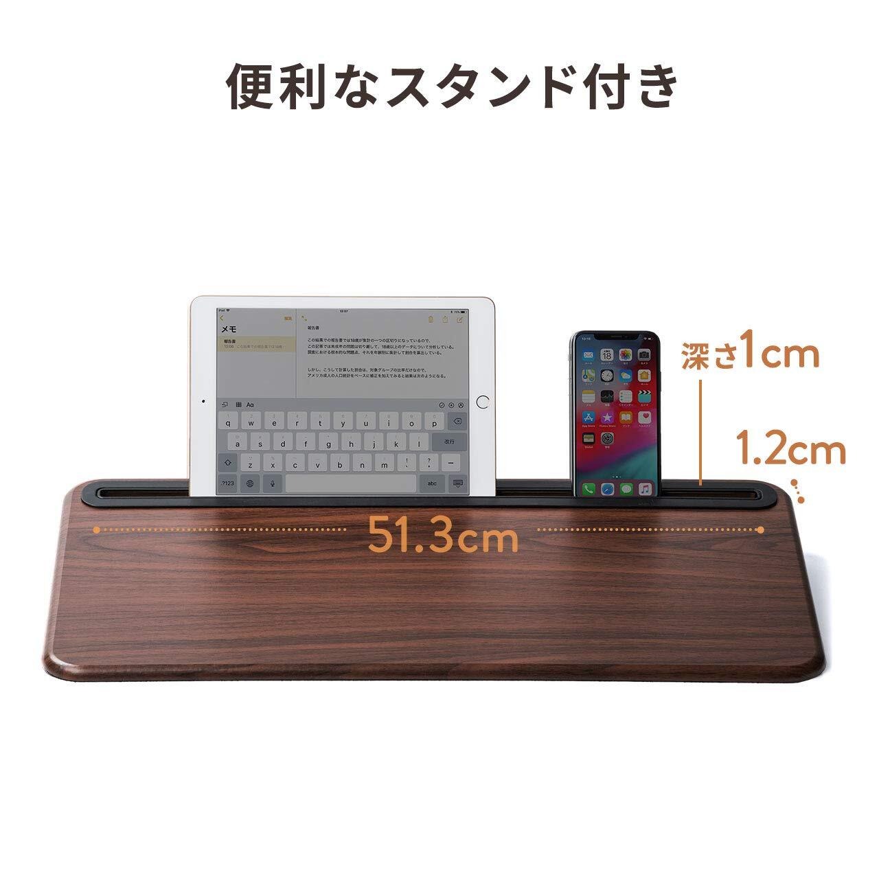 サンワダイレクト ひざ上テーブル|ノートPC/タブレット用|15.6型対応|マウスパッド・スマホ/タブレットスタンド・クッション付き|木目調|200-HUS008