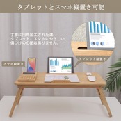 ベッドテーブル ノートパソコンデスク OIWAI ラップデスク|ベッド机|寝ながらパソコン|PCデスク|ローテーブル|折りたたみ|木製|高さ調整|角度調整|タブレットスタンド|引き出し付き|竹製 (73*35cm)