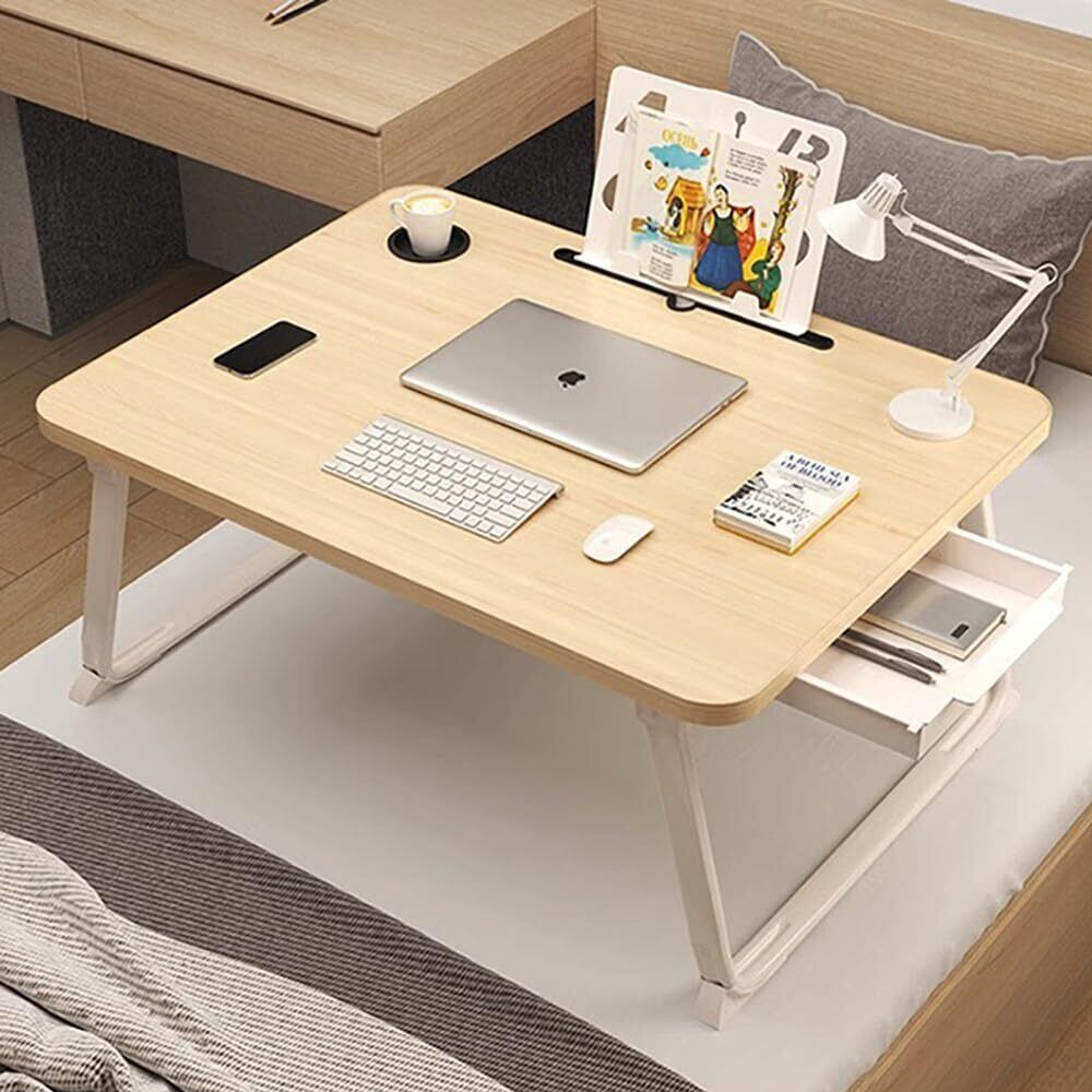 Eternal Wings 折りたたみテーブル 折り畳みテーブルパソコンデスク座卓 ベッドテーブル ローテーブル 凹溝付 き ラップトップテーブル ローテーブル PCデスク 大容量表面 多機能 軽量 ベッド ソファ オフィス 食事 利用可 4色 (木の色)
