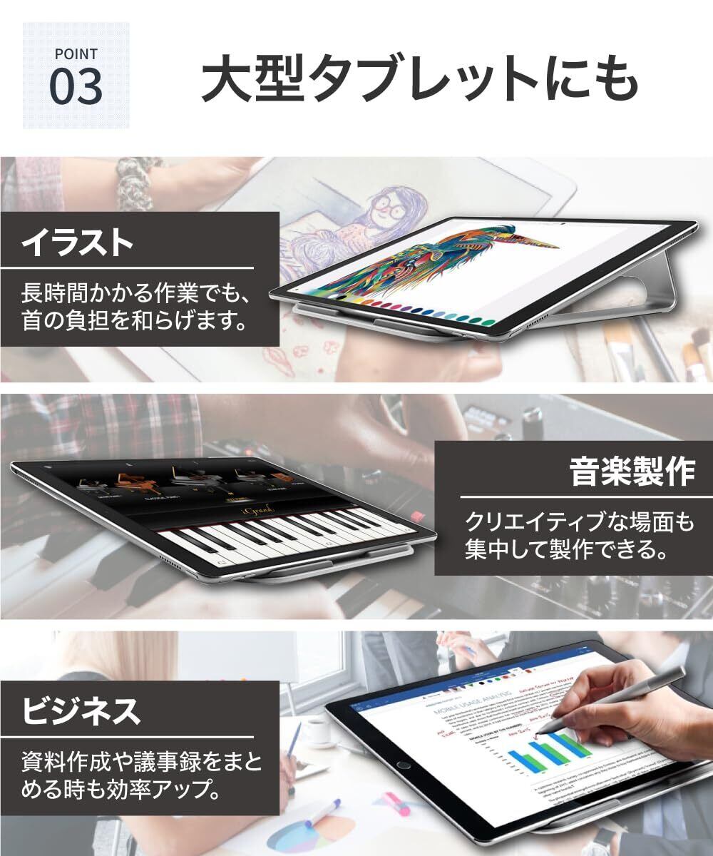 従来型ノートPC、Macbook AirやMacbook 12等のウルトラブック、さらにはペンタブ、板タブ、モバイルモニターなどのスタンドとして幅広くご活用いただけます。