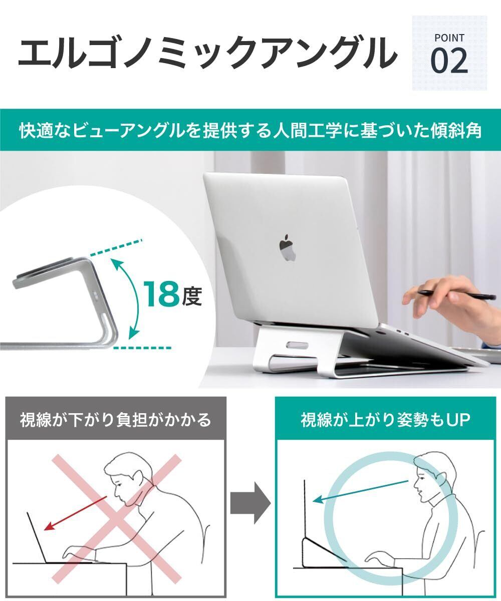 LOE(ロエ) 【日本企画】 人間工学に基づいた ノートパソコン スタンド (11-15インチ用) アルミニウム 製 (シルバー)