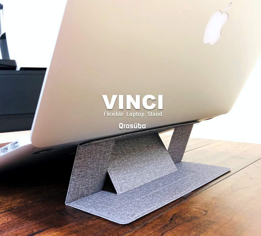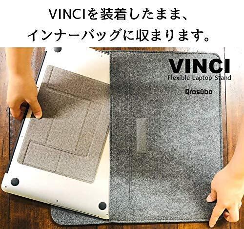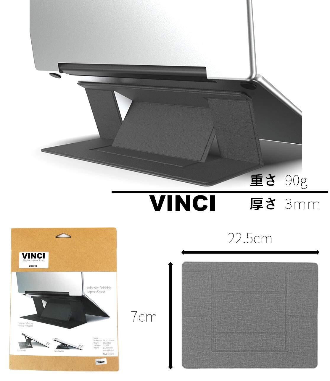 【テレワーク・リモートワークのための設計 持ち運びに最適】ヴィンチは脱着可能のパソコンスタンドで、装着時は常時持ち運びができます。使用しないときはノートパソコンの裏面に畳むだけ。一般的なパソコンスタンドは重量や大きさから持ち運びにストレスを感じますが、ヴィンチはテレワーク・リモートワークで手軽に気楽に持ち運びができます。