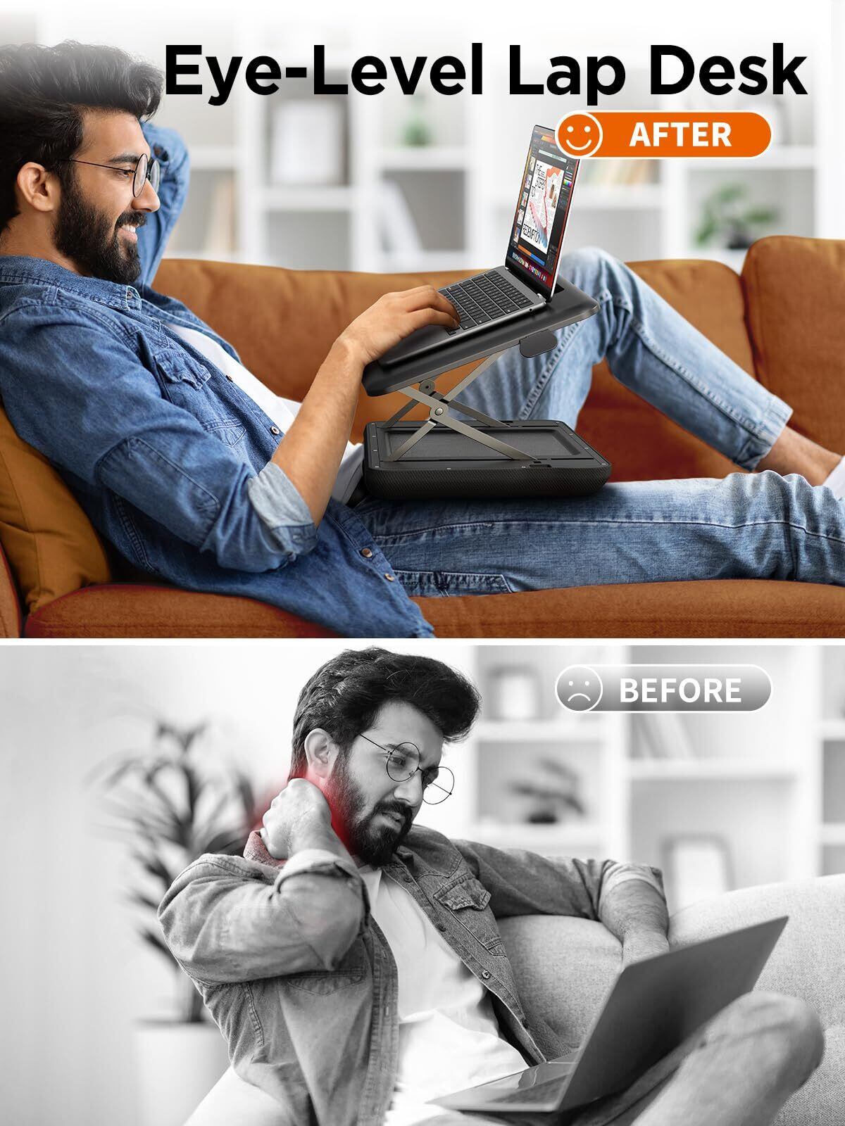 SAIJI 膝上テーブルクッションテーブル コンフォーツ 超軽量 持ち運び便利ノートパソコン用ラップデスク 15.6インチまで対応 3段階の高さ調節 母の日プレゼント 膝上作業 ソファー/ベット/車/オフィスで利用可能なミニマルなデザイン