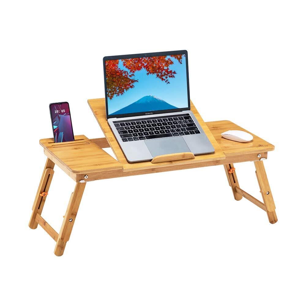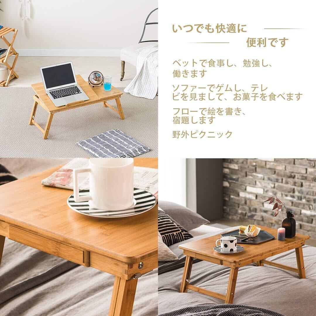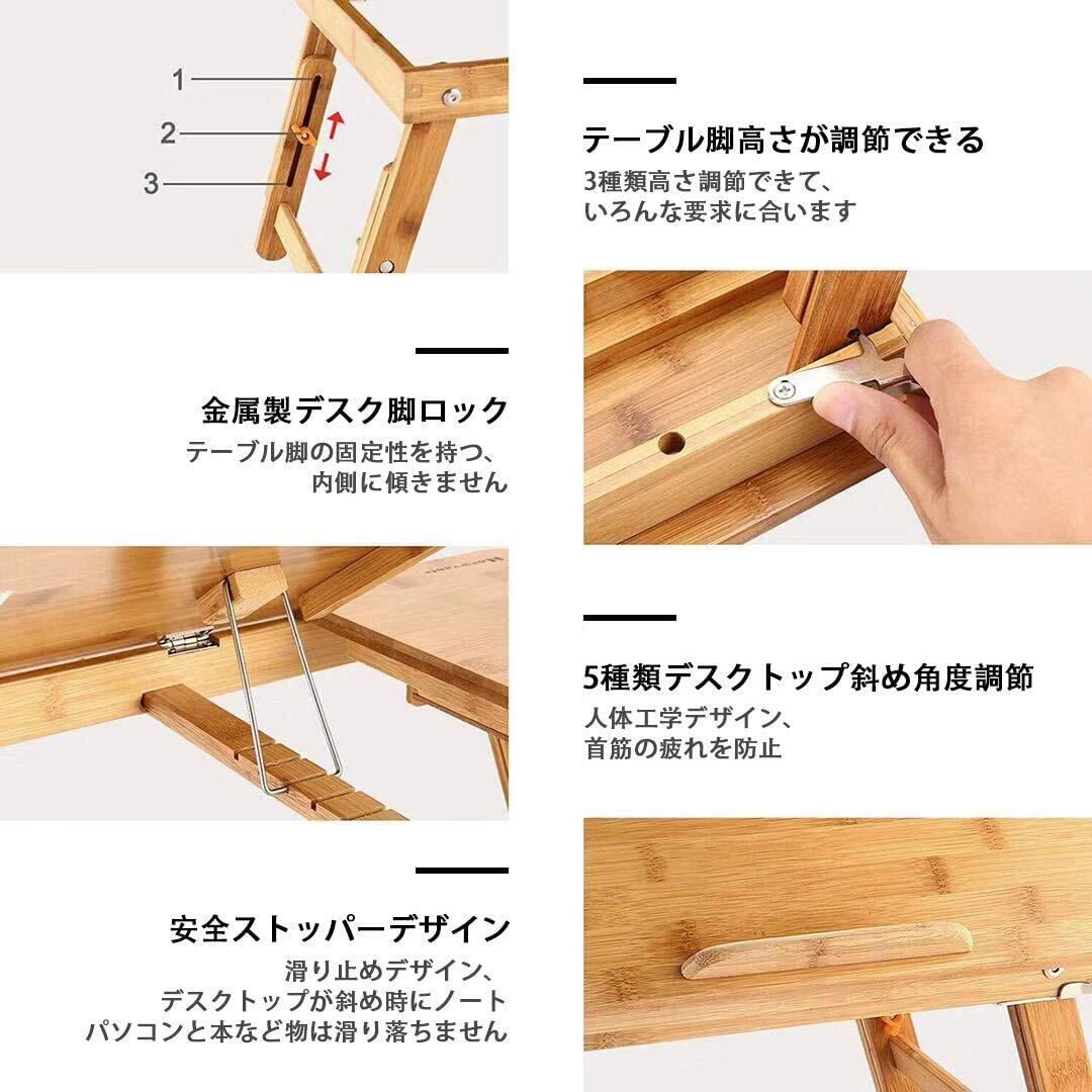ノートパソコンデスクPCスタンド タブレットスタンド 傷付きにくい 人間工学設計 無段階高さ調整可能 竹製 ベッドテーブル ローテーブル 折りたたみ式 多機能 万能テーブル 座卓・ちゃぶ台 角度&高さ調節可能 安定性あり 収納付き テーブル (71*35cm)