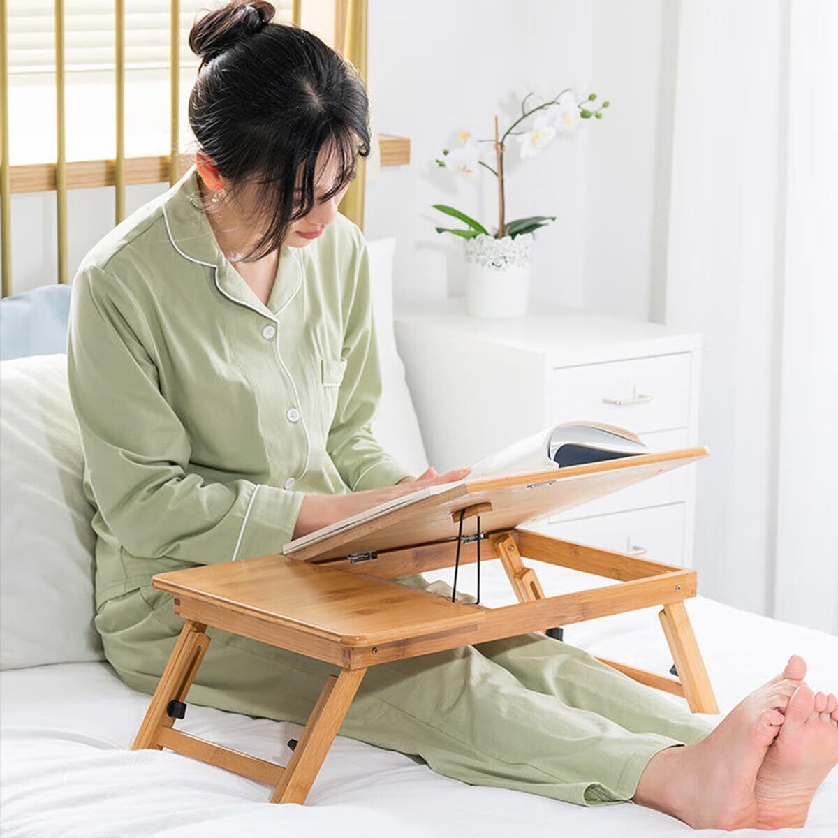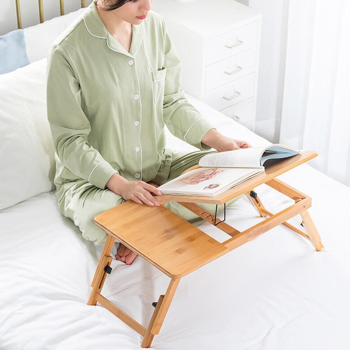 ノートパソコンデスク 調整可能ベッドテーブル ちゃぶ台 引き出し付き 高さ調整可能 姿勢改善 折りたたみ式 竹製 多機能