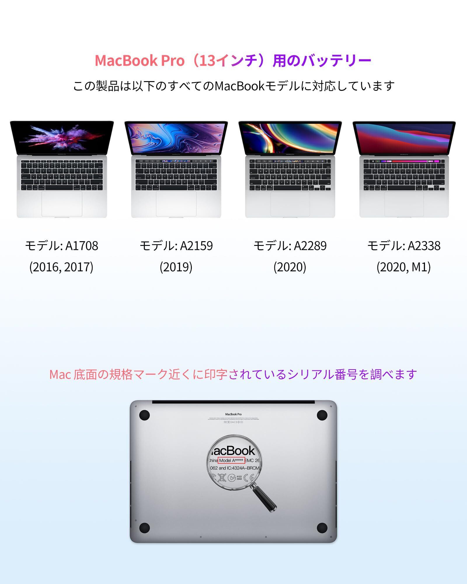 ASMARK Macbook Pro A1708 バッテリー 交換 適用 13インチ A1708(2016,2017) A2159(2019) A2289(2020) A2338(2020,2022) A2171/A1713 バッテリー 13-inch