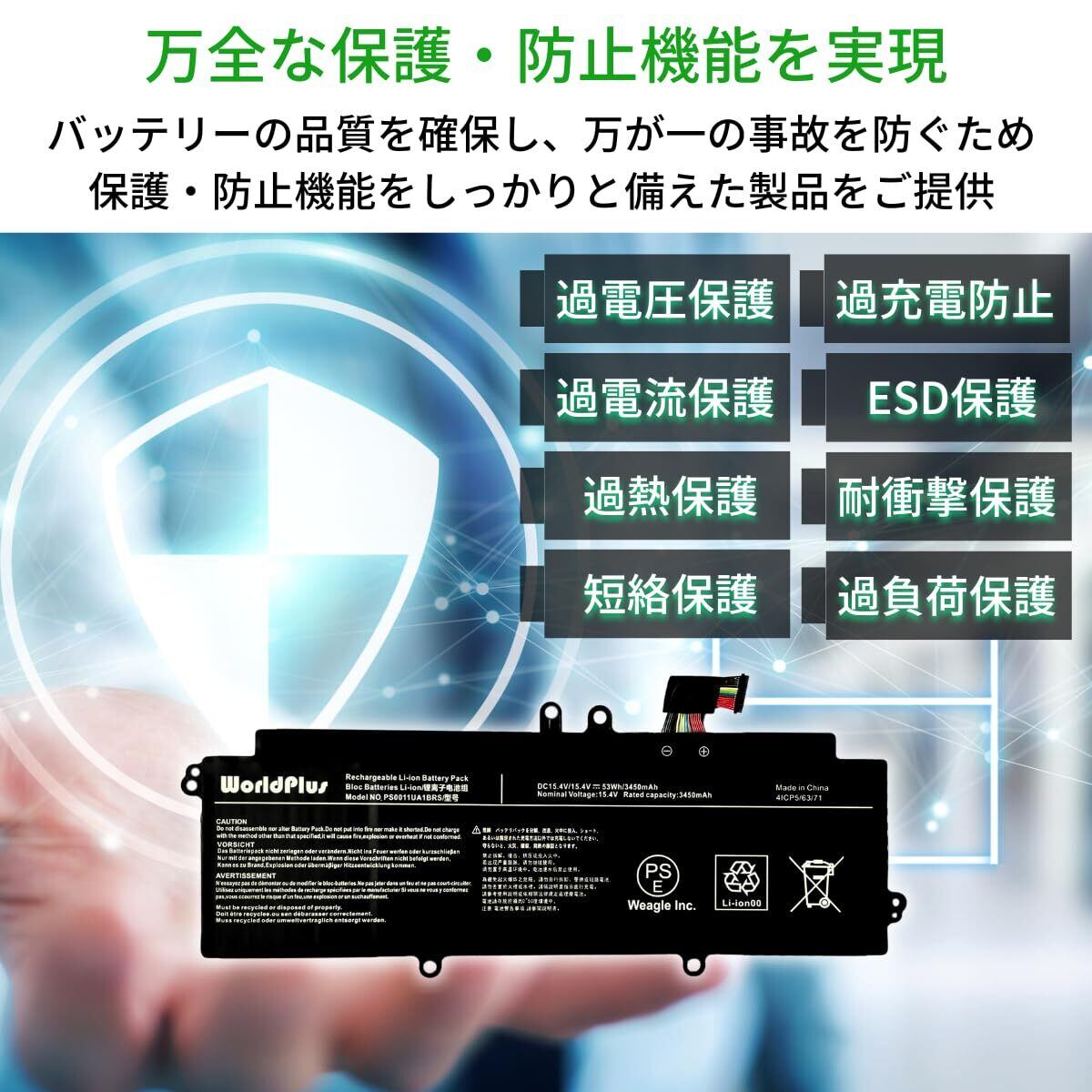 WorldPlus PS0011UA1BRS 互換バッテリー 東芝 Toshiba Dynabook G83/HS V83/HS Portege X30L-J X30L-K-139