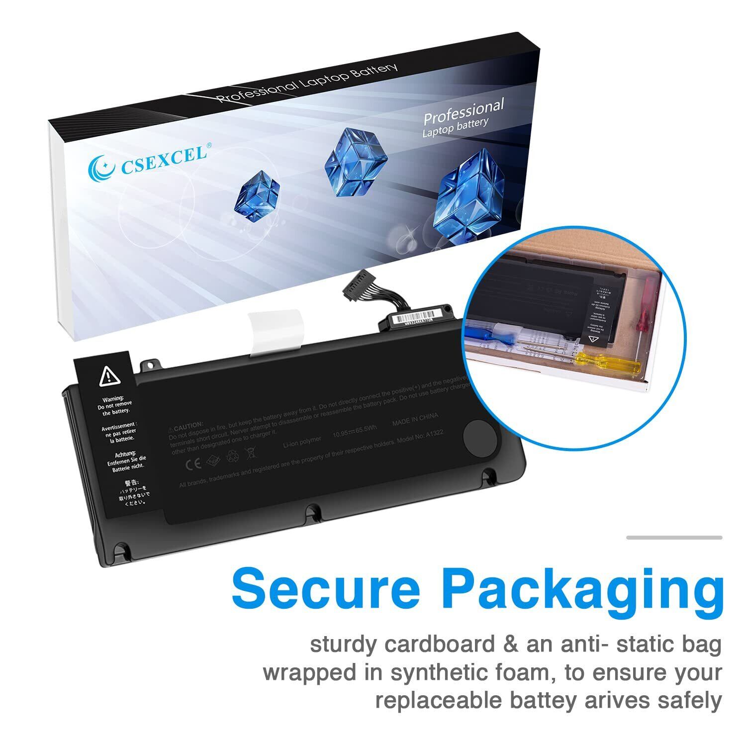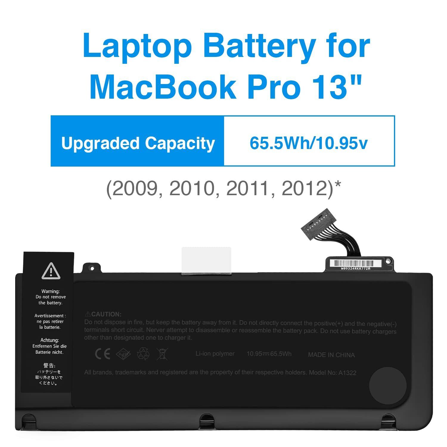 の交換用。MacBook Pro 13.3" A1278 A1322(Mid 2009, Mid 2010, Early and Late 2011, Mid 2012 Version) 661-5229 661-5557 020-6547-A 020-6765-Aです。世界的に有名なサードパーティであるCE、FCC、RoHSによって安全性が証明されている