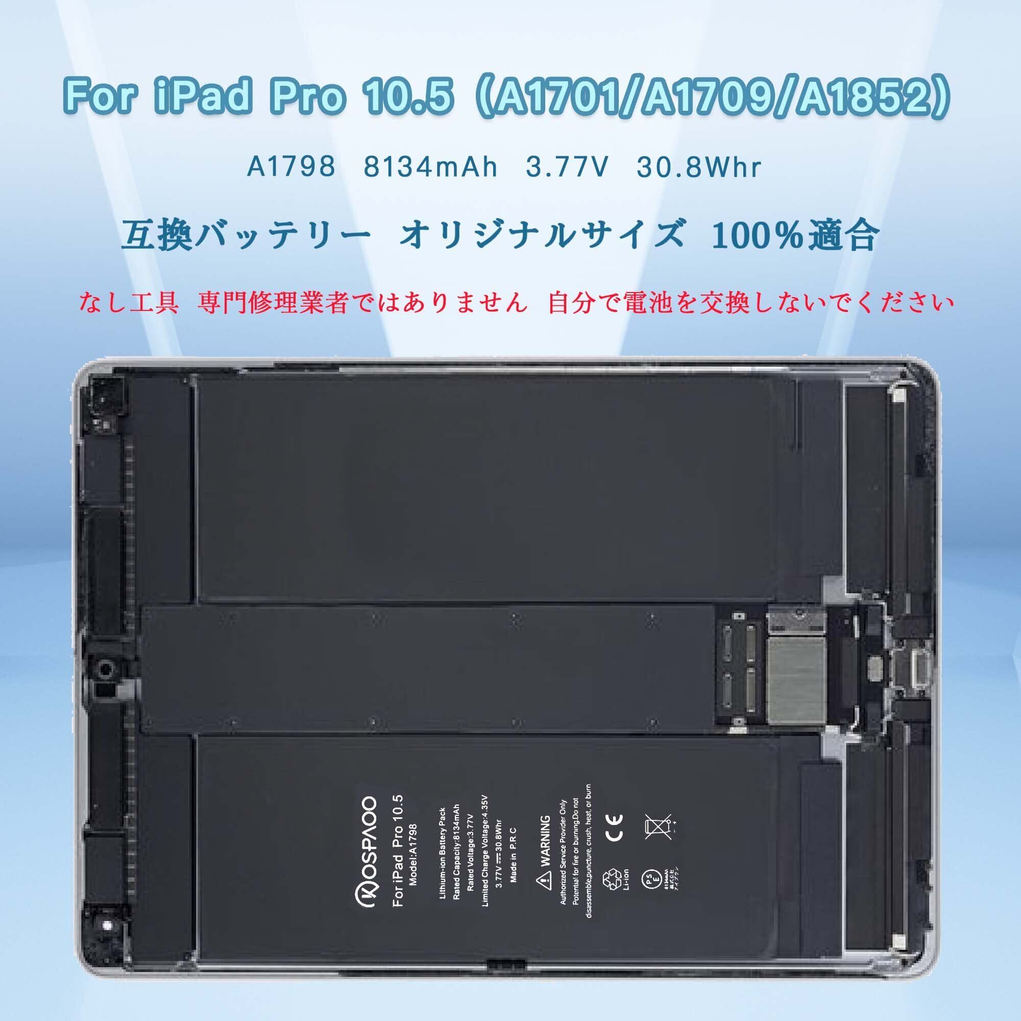 for iPad Pro 10.5 バッテリー 互換 A1798電池 容量8134mAh 3.77V PSE認証 適用A1701/A1709/A1852機種 交換修理用 Lithium-ion Battery Pack 高温・低温耐性 400~600サイクル寿命 適用iPad Pro 10.5電池【No Tool】