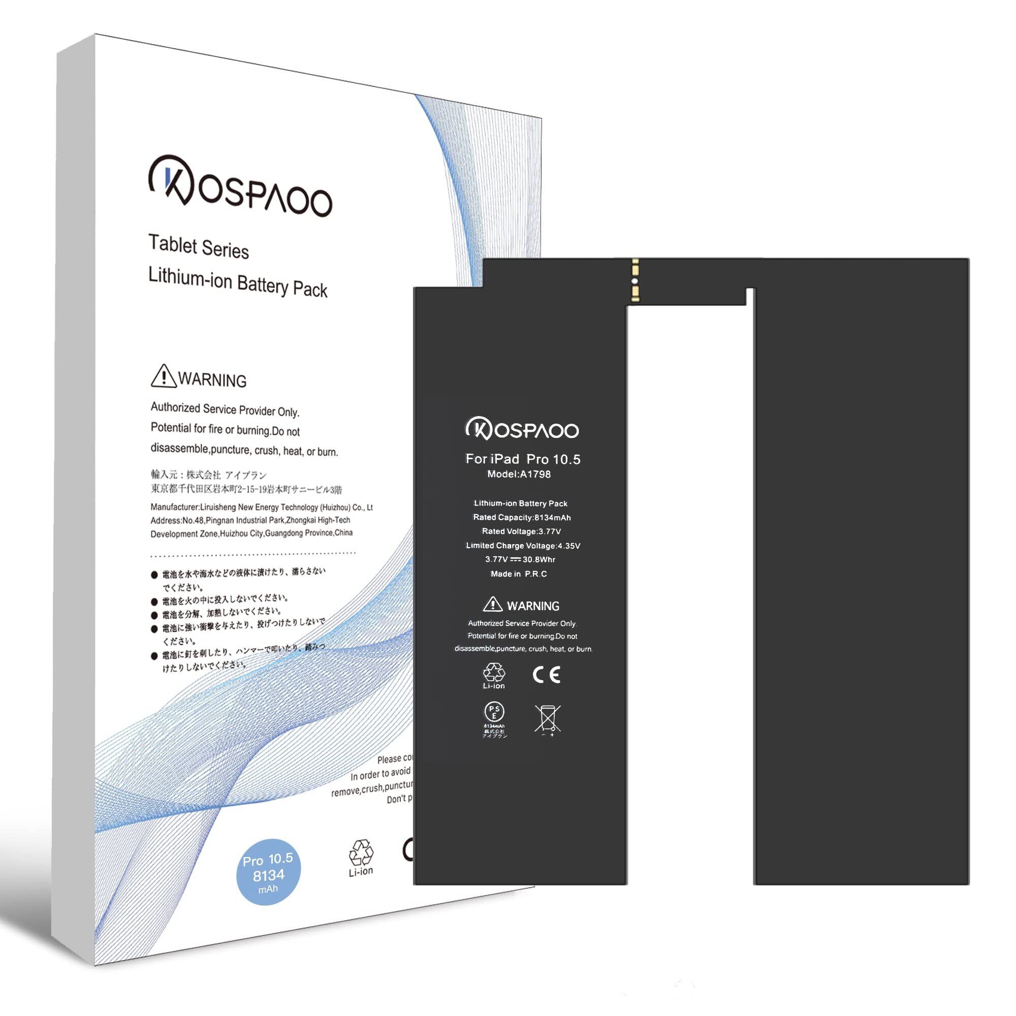 【対応機種】このバッテリーはiPad Pro 10.5【第1世代 2017】に適しています。対応するiPadの機種はA1701/A1709/A1852、バッテリーモデル:A1798、他のiPad端末には対応しておりませんので、他の機種には使用しないでください。 裏面または「設定→一般→情報→機種名」でご確認の上、ご購入ください。この商品には工具や防水シーリング材は付属していませんので、購入前に必ず事前にご確認ください。専門修理業者ではありません、自分で電池を交換しないでください。