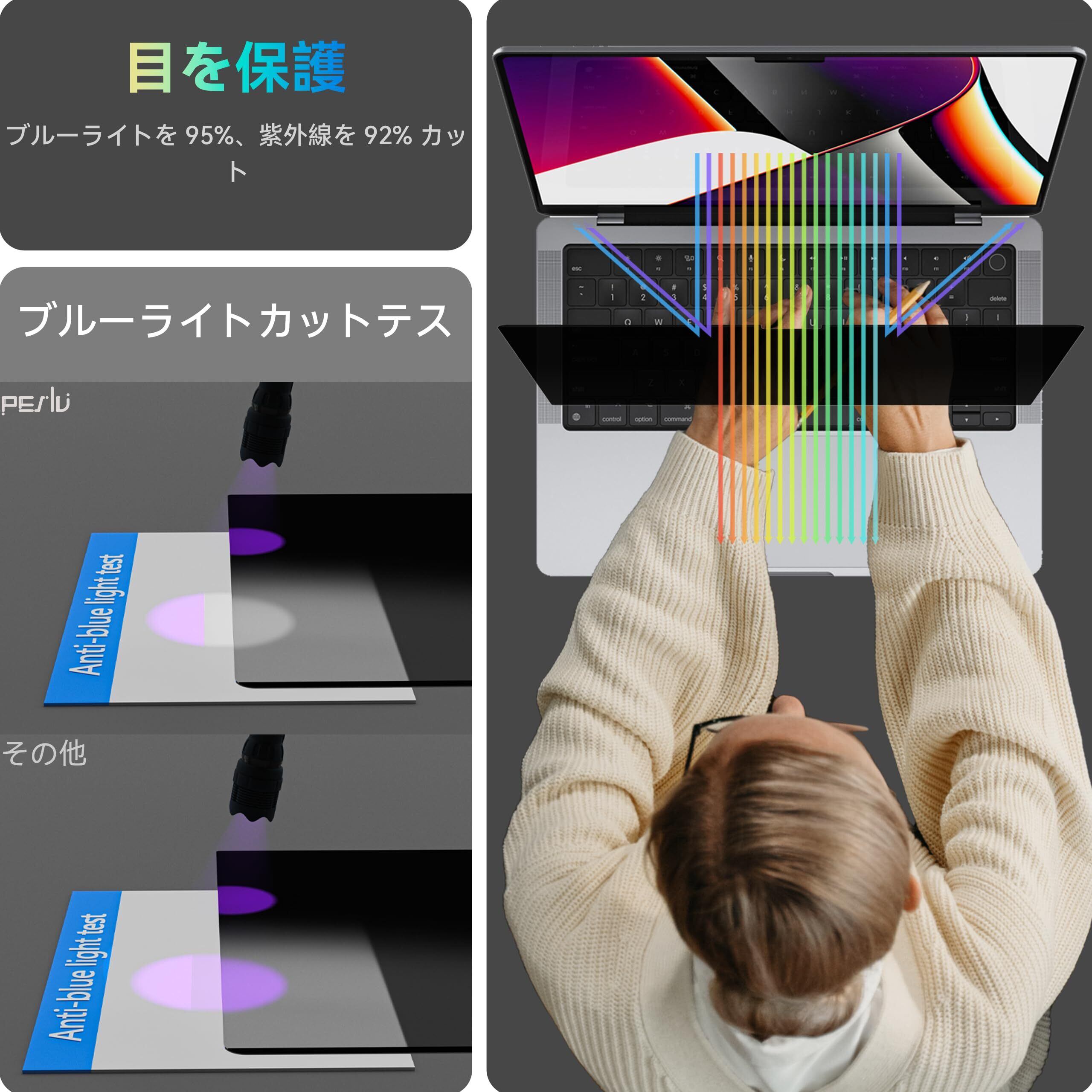 【画面と目を保護】日本製の高品質素材とドイツから輸入したプロセスにより、13インチの磁気ノートパソコンプライバシースクリーンの性能が大幅に向上しました。高品質のフィルター層で、ブルーライトを95%、紫外線を92%カットします。マットな表面、アンチグレアで、反射光を95%効果的に遮断します。日常使用による傷を防ぐ傷防止層。視力を保護しながら画面を保護します。
