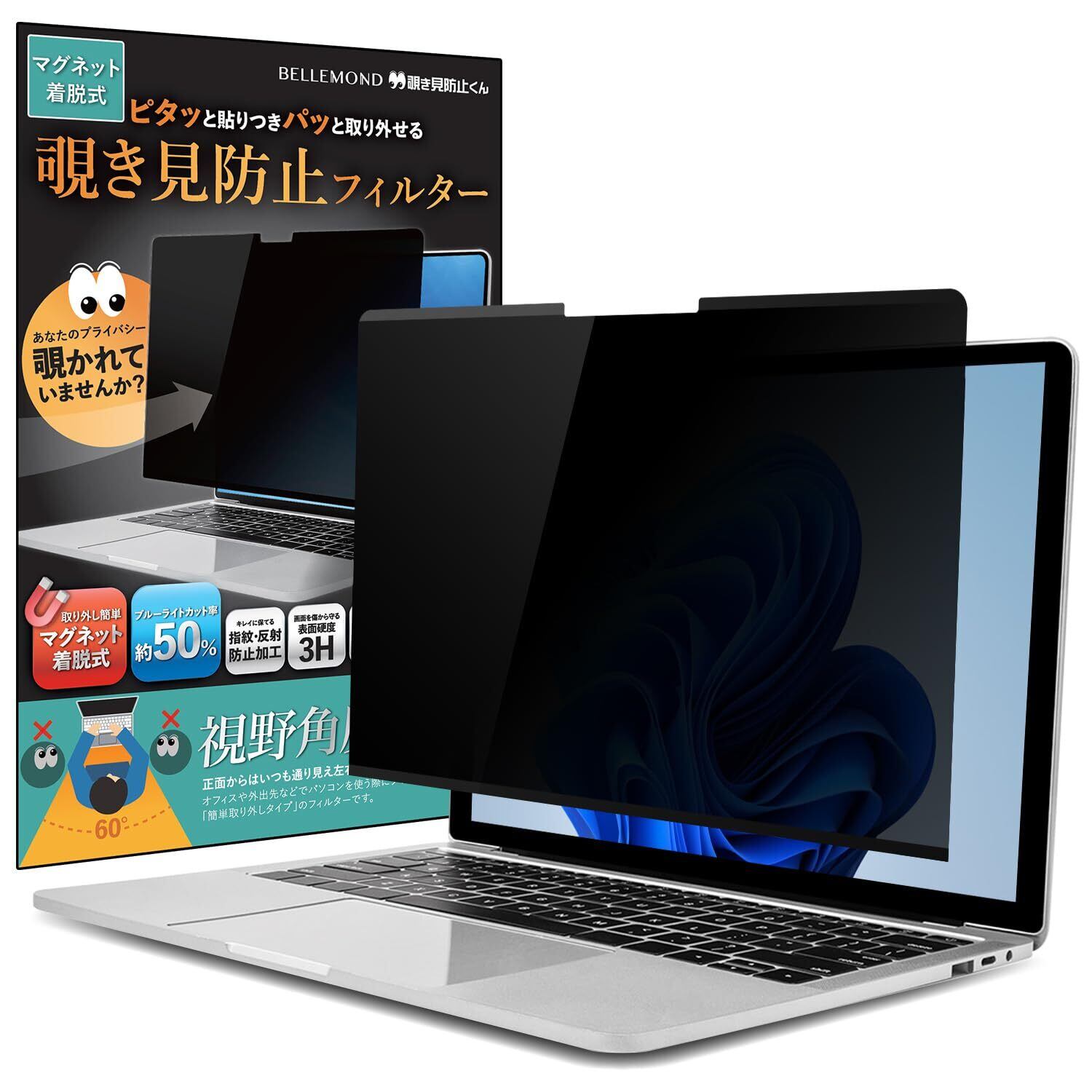 ベルモンド Surface Laptop Go 3 / Laptop Go 2 / Laptop Go 用 覗き見防止フィルム | 着脱 マグネット対応 覗き見防止フィルター プライバシーフィルター パソコン 企業 学校 | 覗き見防止くん B0879
