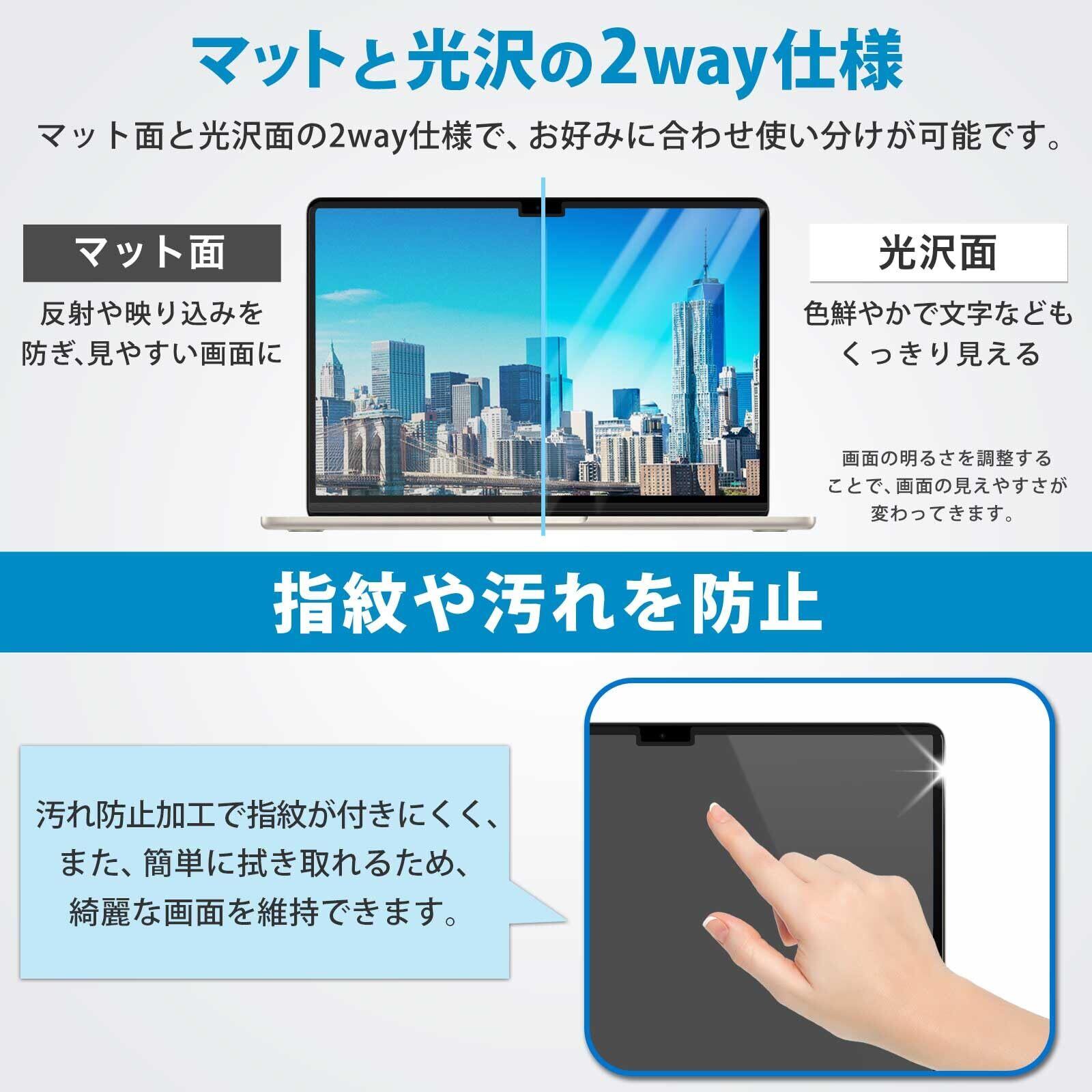 両面の使用が可能:一方の面はアンチグレア加工が施されているので、太陽光や蛍光灯からの反射を抑え、見やすさを向上させます。もう一方の面は光沢があるため、写真や動画の質感が高まり、鮮やかな画面を楽しむことができます。
