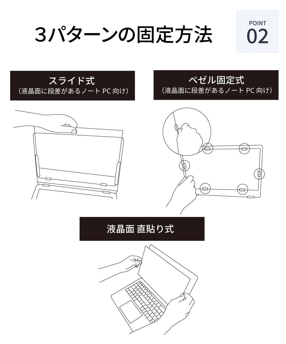 LOE(ロエ) ノートパソコン 覗き見防止 保護フィルム プライバシー フィルター 固定用 装着具 アクセサリー