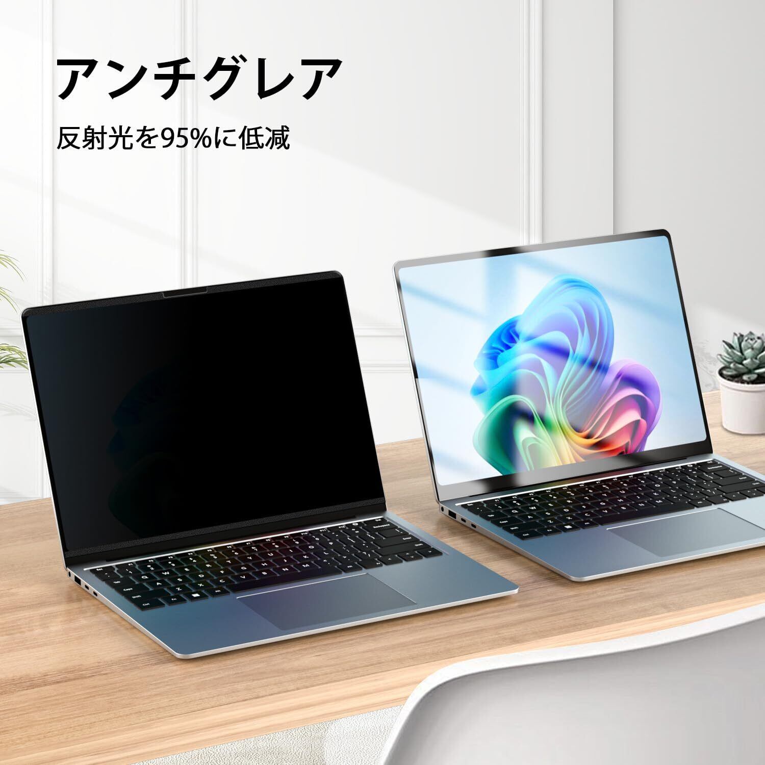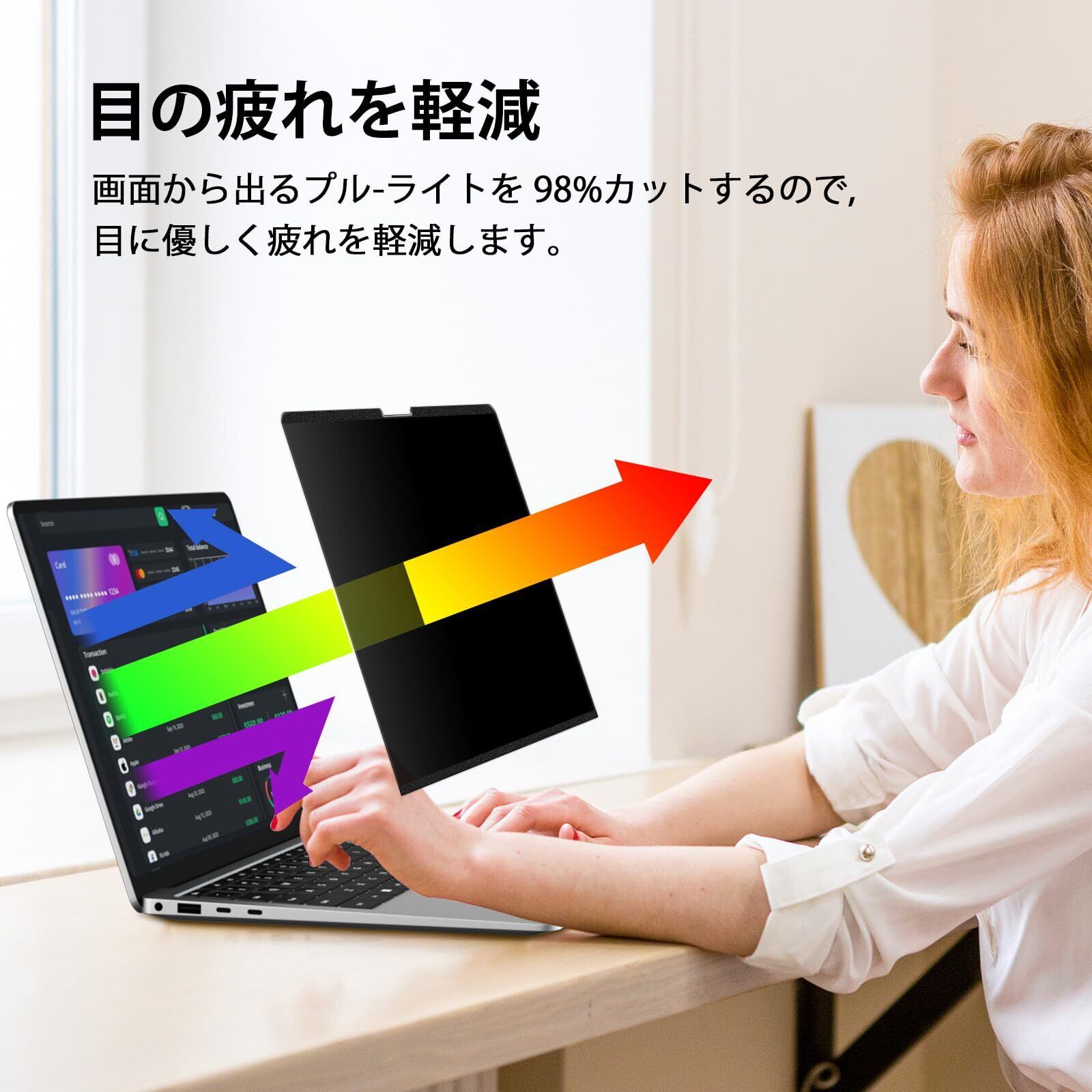[ブルーライトカット&反射軽減] 表面プライバシー保護フィルムはAGアンチグレア技術を採用し、反射光を95%、ブルーライトを99%カット。目と肌をダメージから守ります。