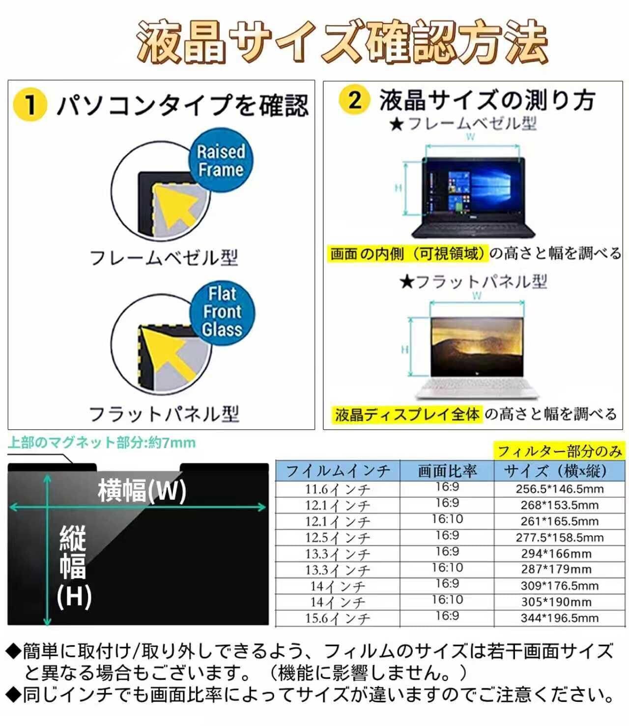 【対応デバイス】画面の表示可能画像領域が以下のパラメータを満たすノートパソコンにのみ適しています。ご注文の前に、ノートパソコン画面の表示可能画像領域の値を測定して確認してください。幅:305mm、高さ:190mm、対角線:14インチ。HP、Lenovo、Dell、Acer、Asus、Samsung、Envy、Toshiba、その他の14インチ16:10アスペクト比のノートパソコンブランドと互換性があります。