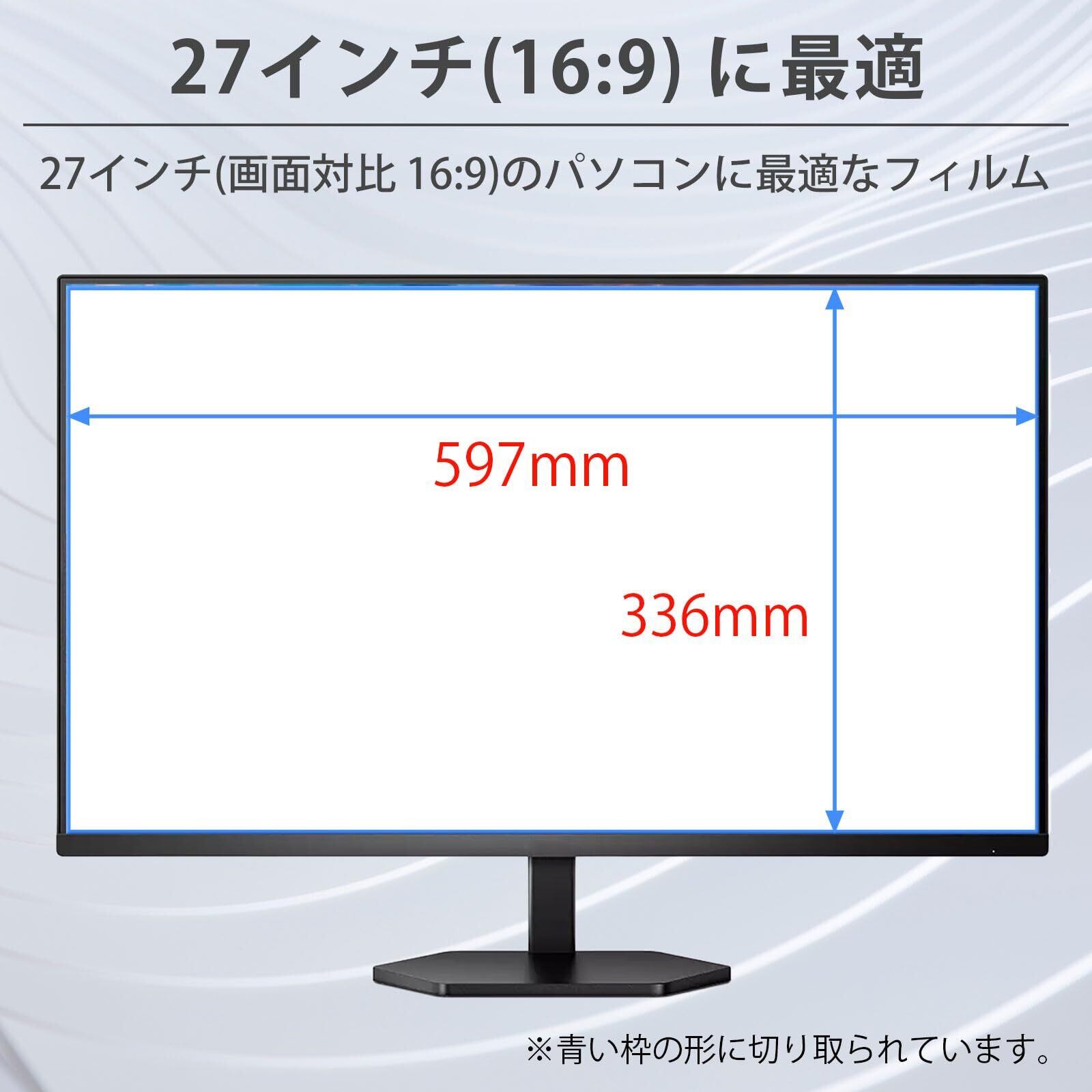 【対応機種サイズ・画面比率】:27インチ 16:9(フィルム寸法:597*336mm)※モニターのサイズは同じインチ数でも機種によってばらつきがあるため、詳細のサイズを事前に確認されることをおすすめいたします。