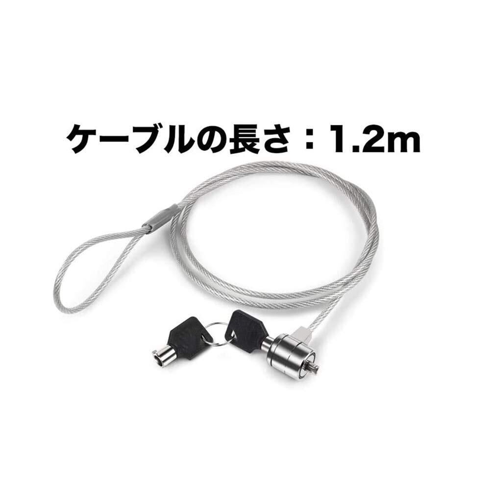 1個セット 1.2m ピンシリンダー錠 パソコン ワイヤー ロック シルバー 盗難対策 ノートパソコン 鍵付き