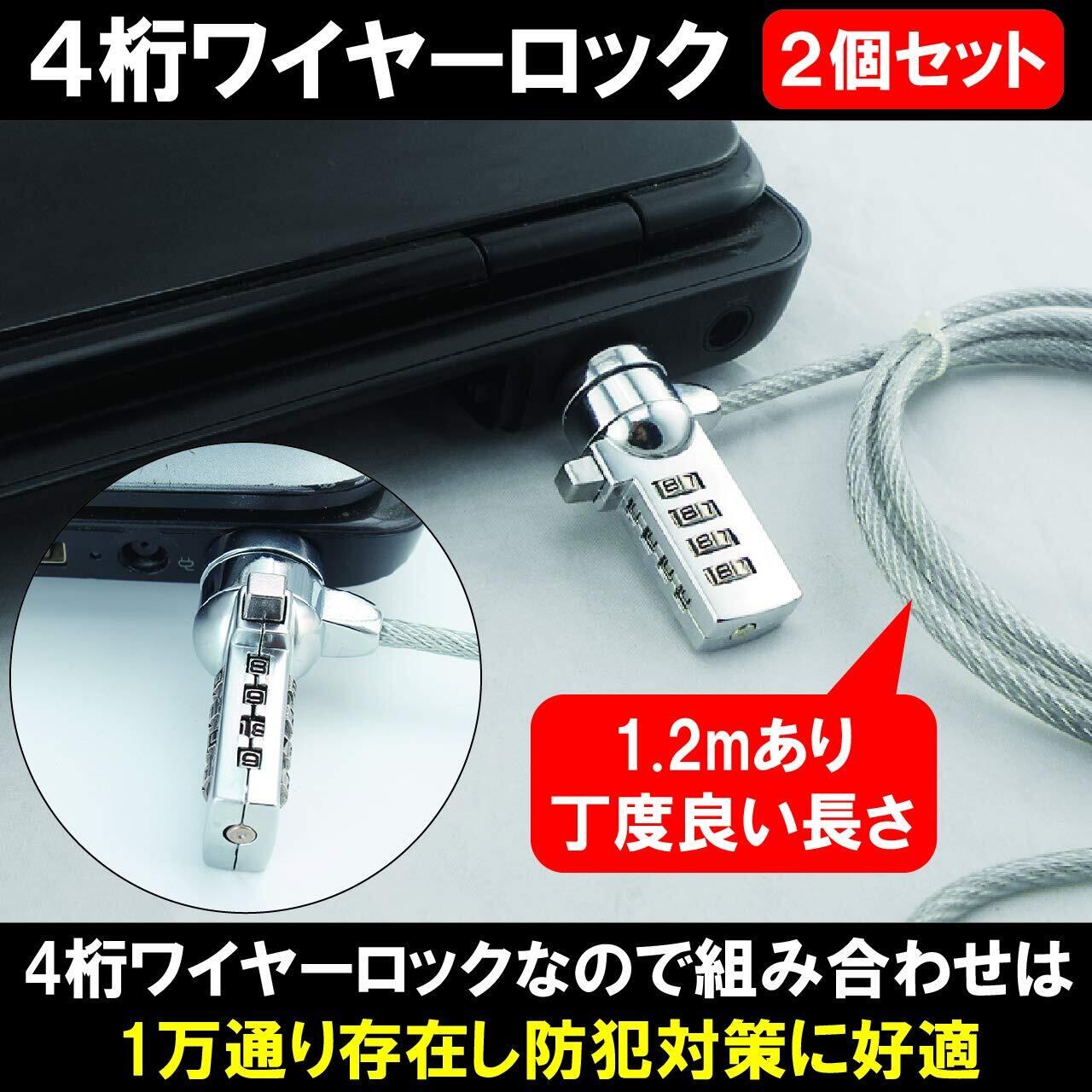 セキュリティ ワイヤー (2個セット1.2m) 4桁 ダイヤル ロック ノートPC タブレット 盗難 対策 パソコン セキュリティ パソコンワイヤー セキュリティスロット