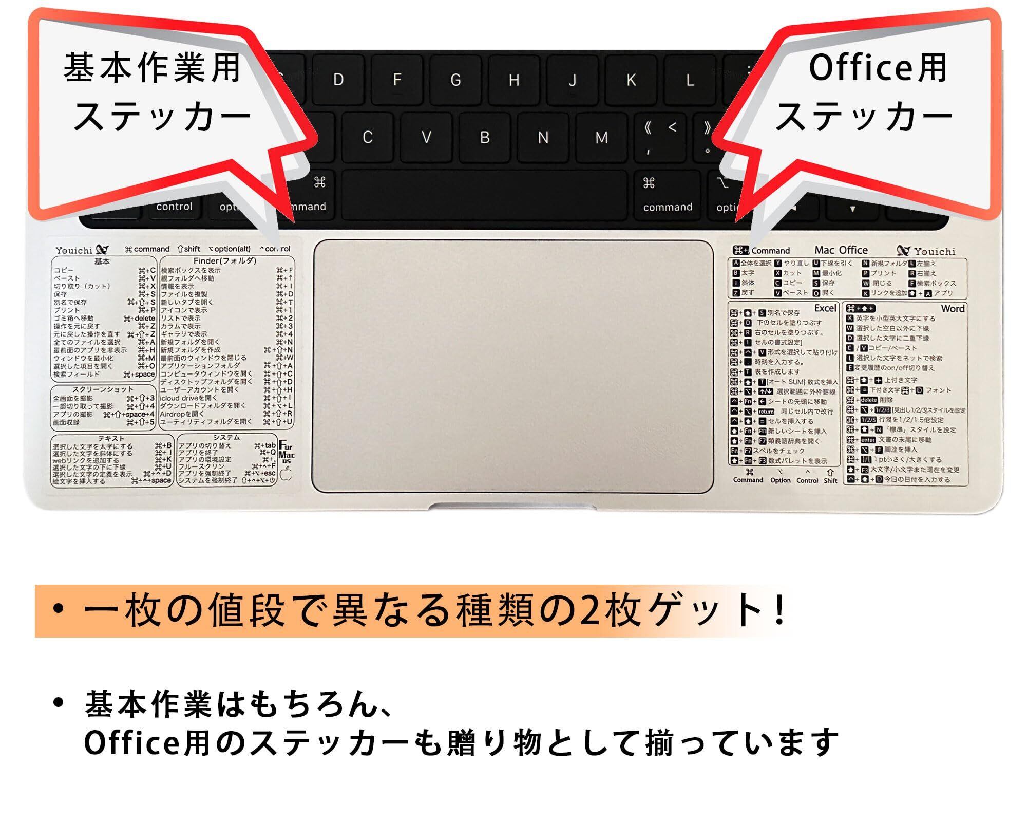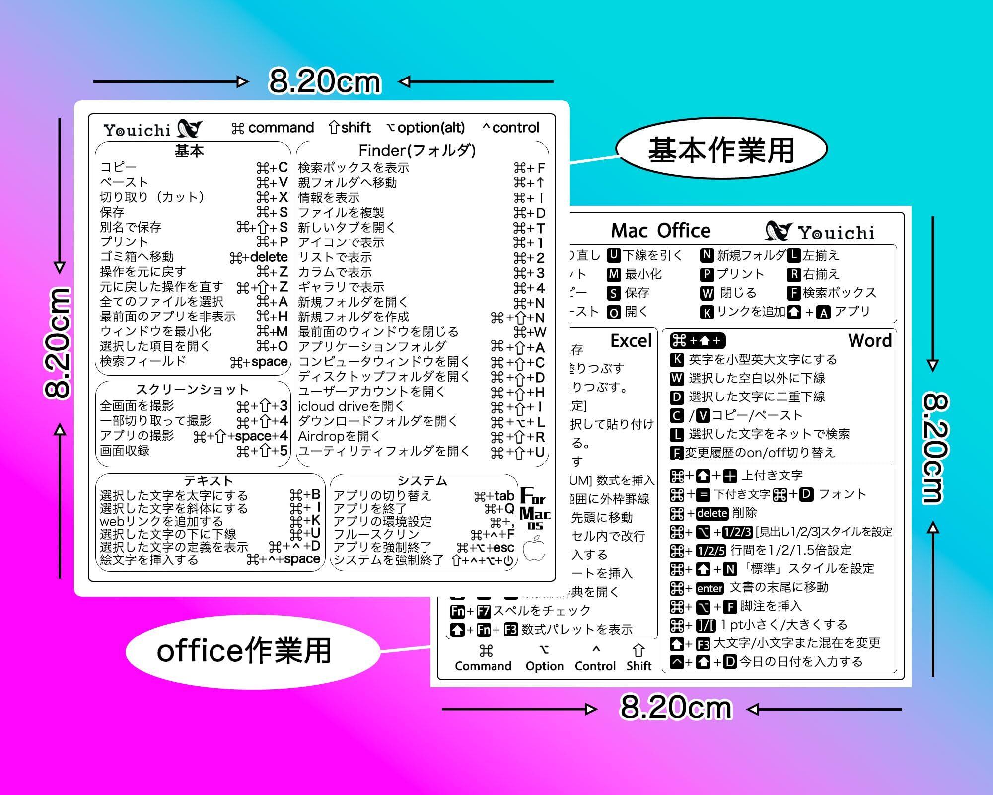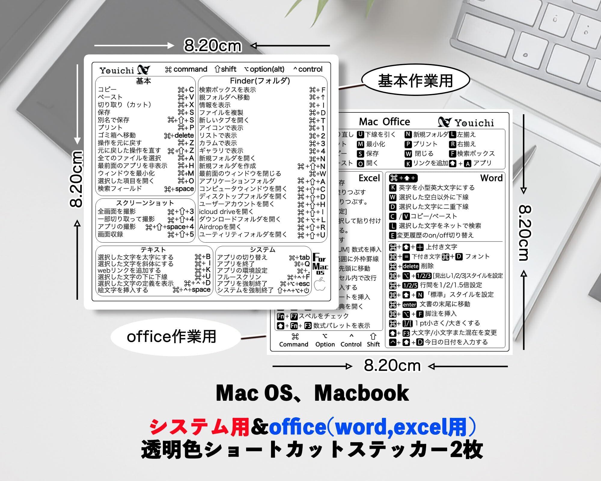ノーブランド品【YOUICHI】MacOS用ショートカットステッカー、システム操作用&Office用の2枚組、日本語版透明ビニールステッカー、跡が残らない接着剤、防水、13~16インチMacBookAir/Pro/iMac/Mini対応、ショートカットシールEXCEL82mmx82mm2枚組