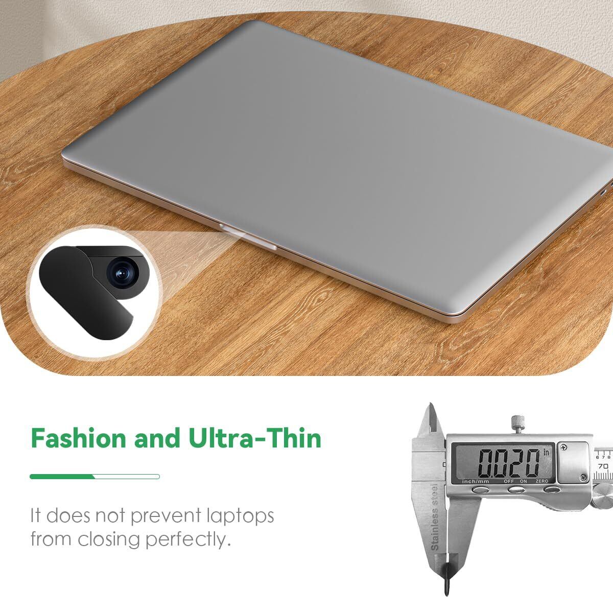 【超薄型デザイン】: 厚さわずか 0.4 mm/0.015 インチのこのウェブカメラ カバーは、すべてのラップトップおよびタブレットと互換性があり、デバイスの機能を妨げることなくシームレスに見えます。