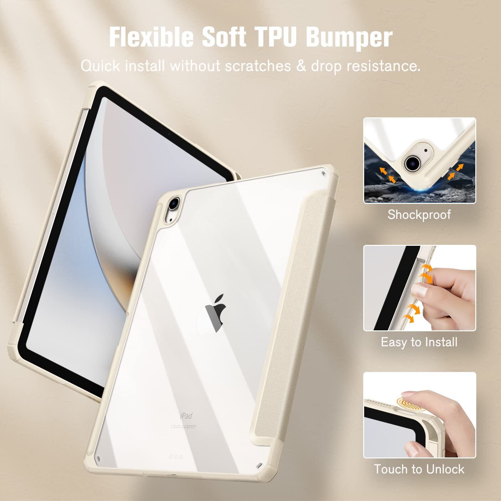 Fintie iPad Air 11インチ ケース M3 (2025 第7世代) / M2 (2024 第6世代) / Air 5/4 ケース 2022/2020 10.9 インチ 透明バックカバー Apple Pencil 収納可能 ワイヤレス充電対応 三つ折スタンド スリープ機能 軽量 薄型 傷つけ防止 PU合成レザー TPU(スターライト)