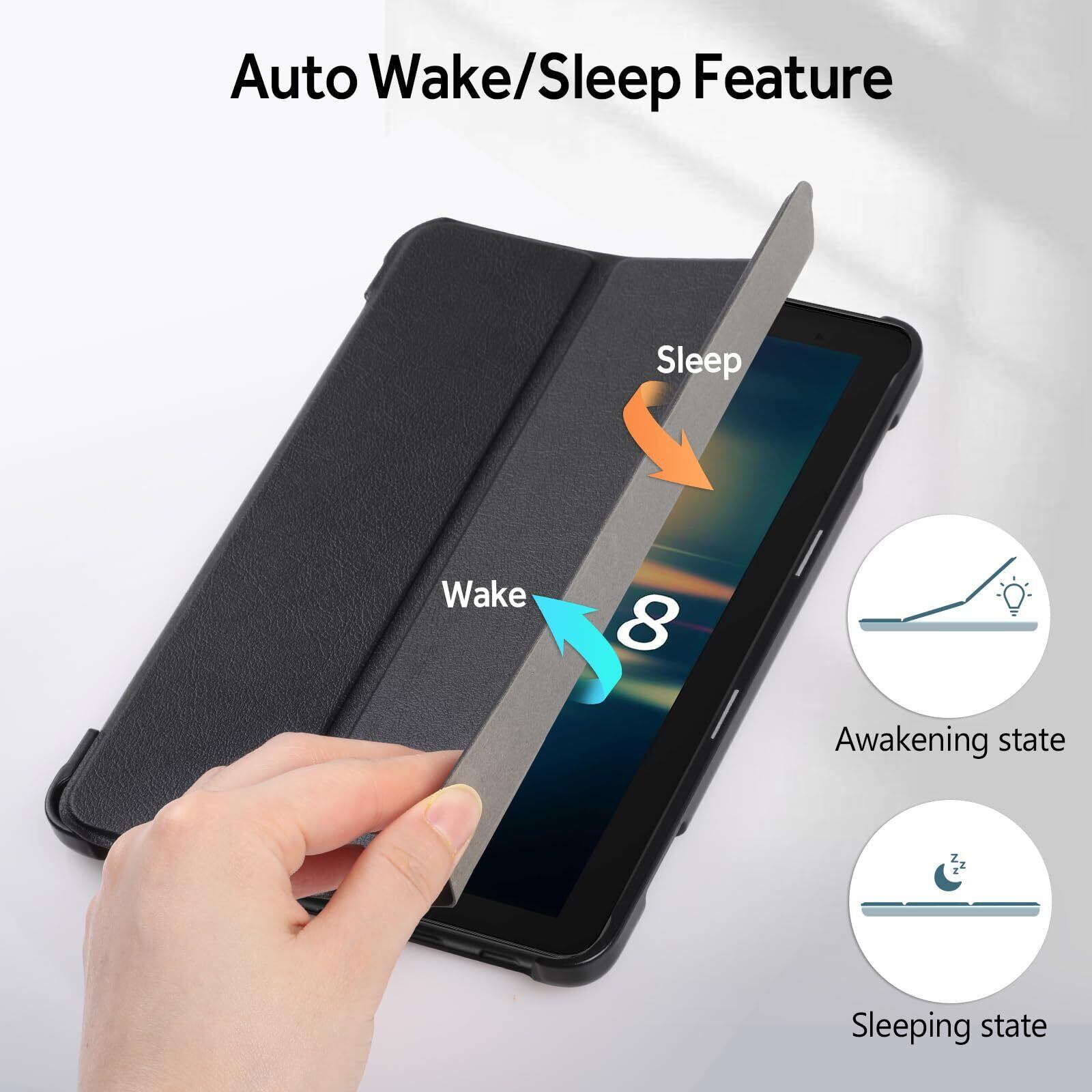 Hianjoo Fire HD 8 対応 ケース (2024/2020/2022年発売 第12/10世代用) タブレットケース Fire HD 8/8 Plus 対応 カバー 8インチ スタンド機能付き オートスリープ機能 全面保護ケース 耐衝撃 擦り傷防止 - ブラック