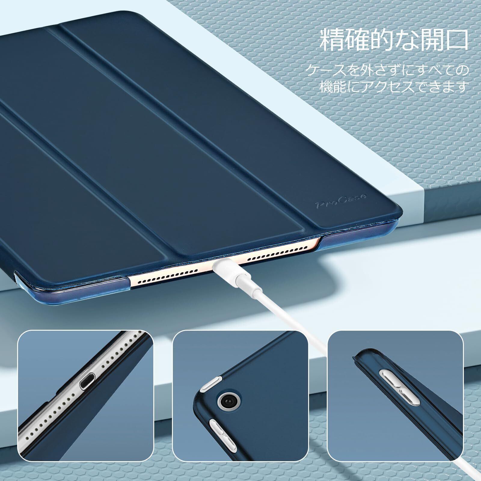 ProCase iPad 9/8/7 ケース (2021 2020 2019) 半透明バックカバー 軽量 スタンド iPad 10.2" 対応 - ネイビー