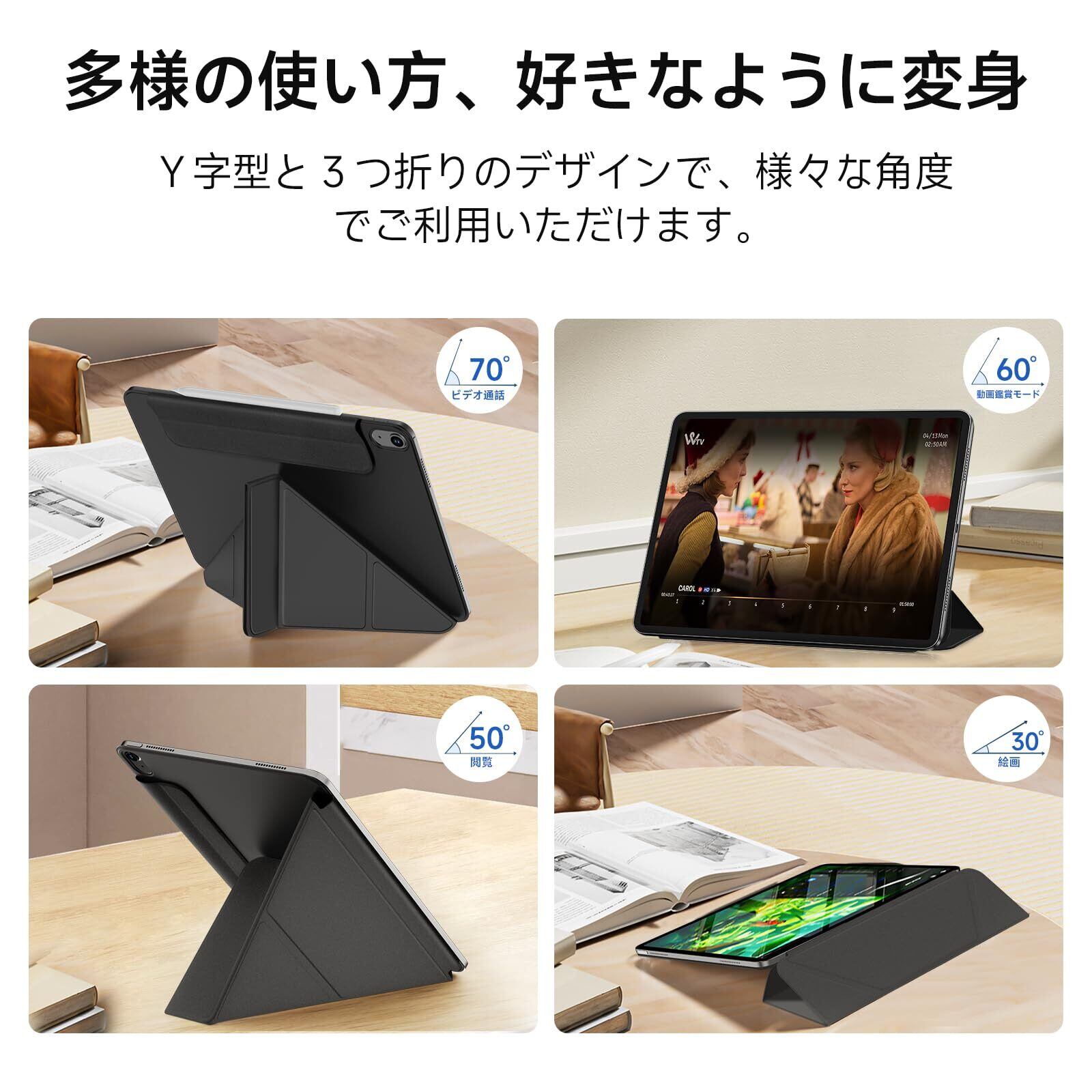 iPad Air 11インチ ケース M2/M3 (2024/2025、第6/7世代)/iPad Air 第5/4世代(2022/2020)/iPad pro 11インチ ケース(2018)専用 横置&縦置 角度調整可能 三角形スタンド 強力マグネット吸着 Pencil対応 極薄 軽量 オートスリープ/ウェイク対応 (ブラック)
