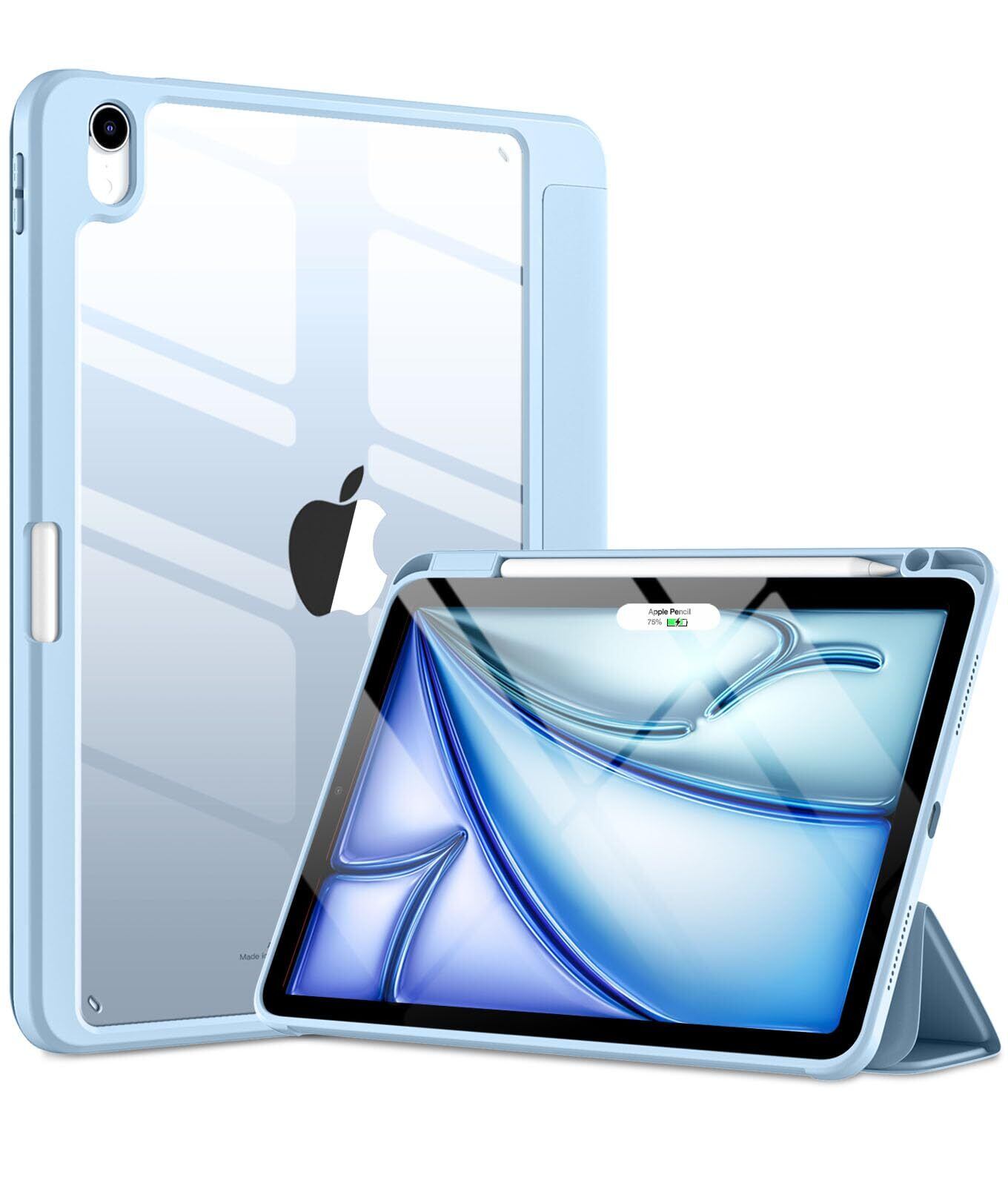 Maledan 対応iPad Air 11インチ ケース(M3/2025)- iPad用 air ケース 2024/M2 Pencil収納可能 DIY透明カバー 薄型 衝撃吸収 ワイヤレス充電対応 三つ折スタンド スカイブルー