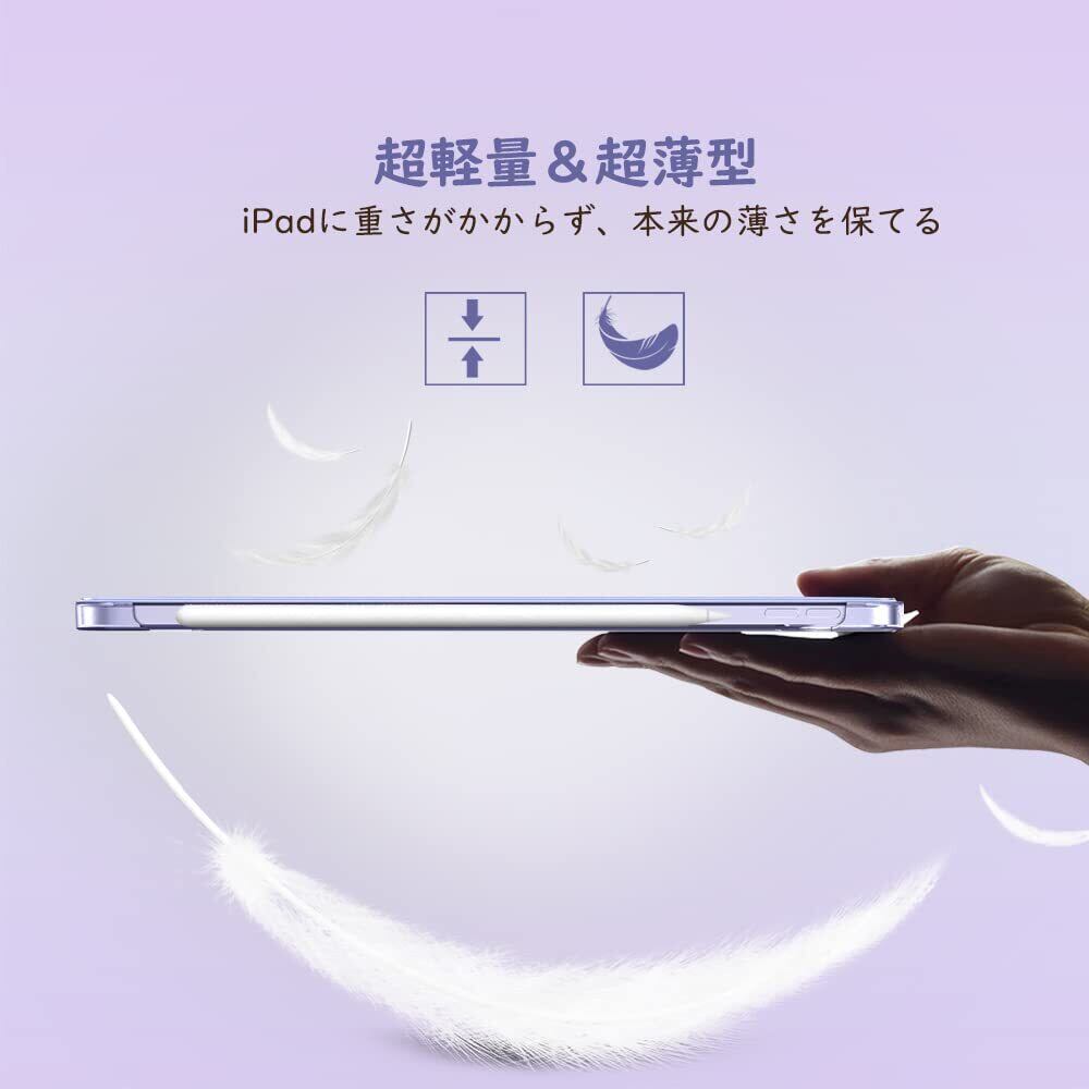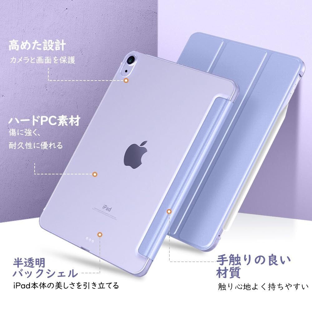 TiMOVO iPad Air 11インチ ケース M3/M2 第7/6世代 (2025/2024) iPad air 第5/4世代 ケース 10.9インチ iPadAir7/6/5/4 カバー 11インチ/10.9インチ PencilPro/第2世代ワイヤレス充電対応 PUレーザー 三つ折り オートスリープ機能 落下防止 手帳型 半透明 ラベンダー