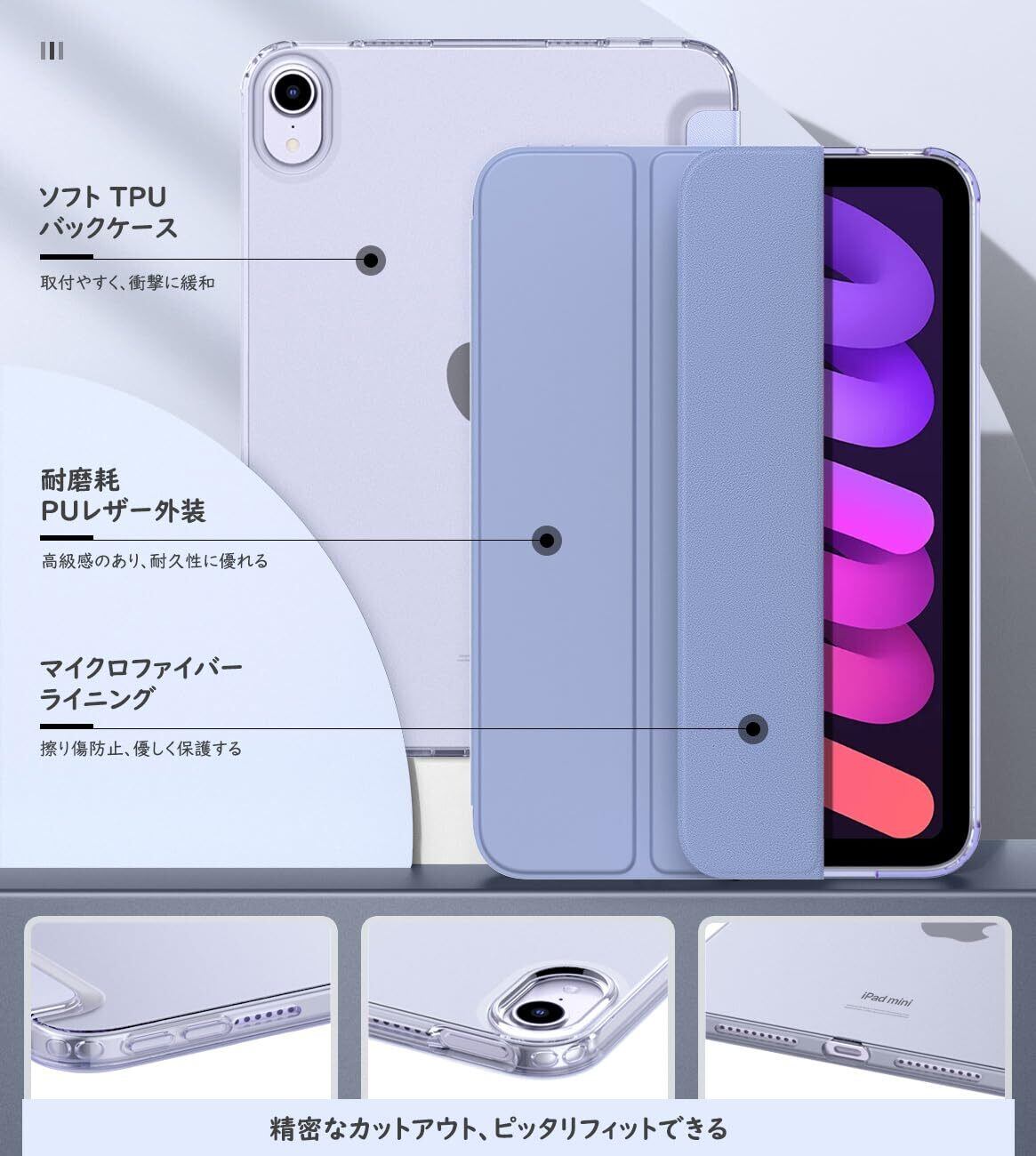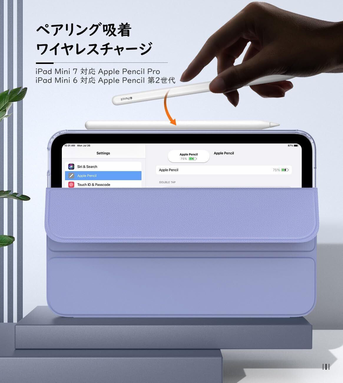 MoKo iPad Mini A17 Pro ケース iPad Mini 第7/6世代 ケース 8.3インチ 2024/2021 保護カバー スタンドケース オートスリープ Pencil2/Proペアリング&充電に対応 高級PUレザー 柔軟TPU 裏地マイクロファイバー 軽量 薄型 傷つき/汚れ防止 マット半透明 Lavender