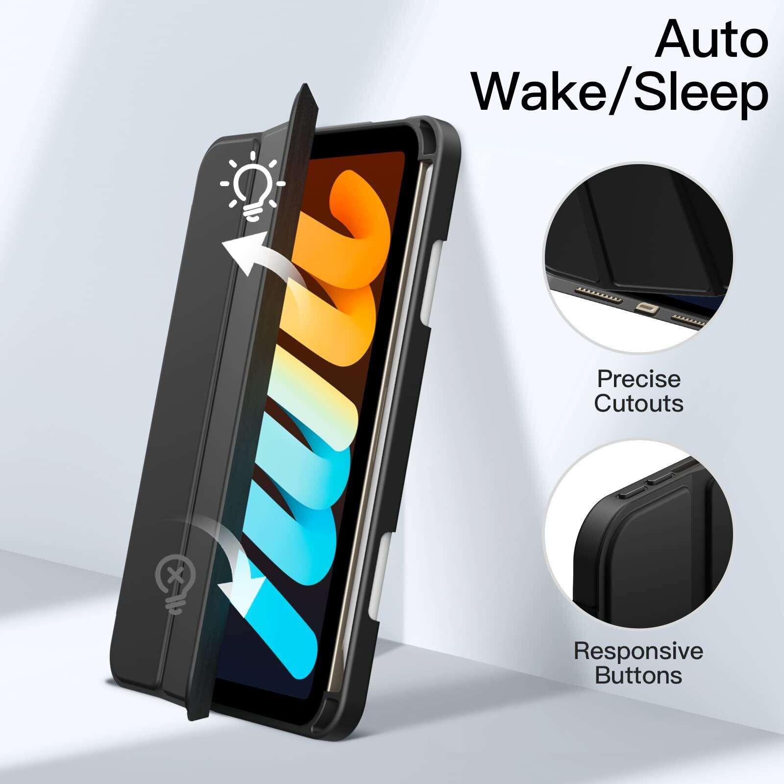 [精確なカットアウト] マグネット式スマートカバーは自動スリープ/ウェイク機能をサポートできます。完璧に整列されたカットアウトにより、スピーカー、ボタンと他のポートに完全にアクセスできます