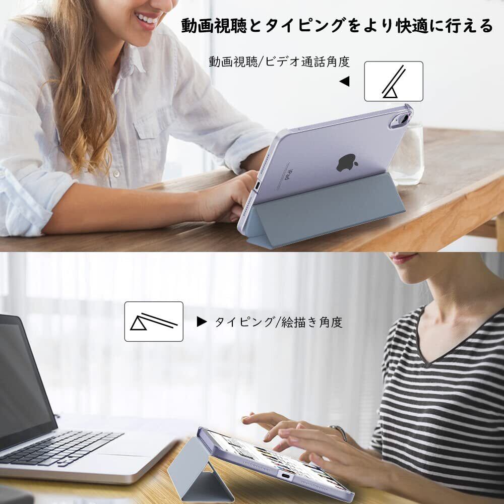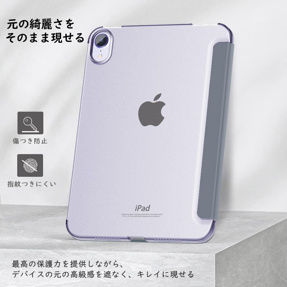 MoKo iPad mini7 ケース (A17 Pro、2024) / iPad mini 6 ケース iPad mini 第7/6世代 8.3インチ 2024/2021 半透明 オートスリープ機能 PencilPro/第2世代ワイヤレス充電に対応 三つ折りスタンド 高級PUレザー 裏地マイクロファイバー 軽量 薄型 傷防止 スマートケース GrayPurple