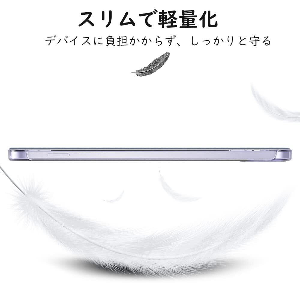「上質な素材採用」蓋は手触りが良く高級感のあふれる耐久性に優れた高級PUレザーで、バックケースは頑丈で耐摩耗性の高い半透明のPC素材を採用しており、内部材質は液晶表面に優しいマイクロファイバーの仕上がりで、タブレットに最高の保護力を提供してくれます。