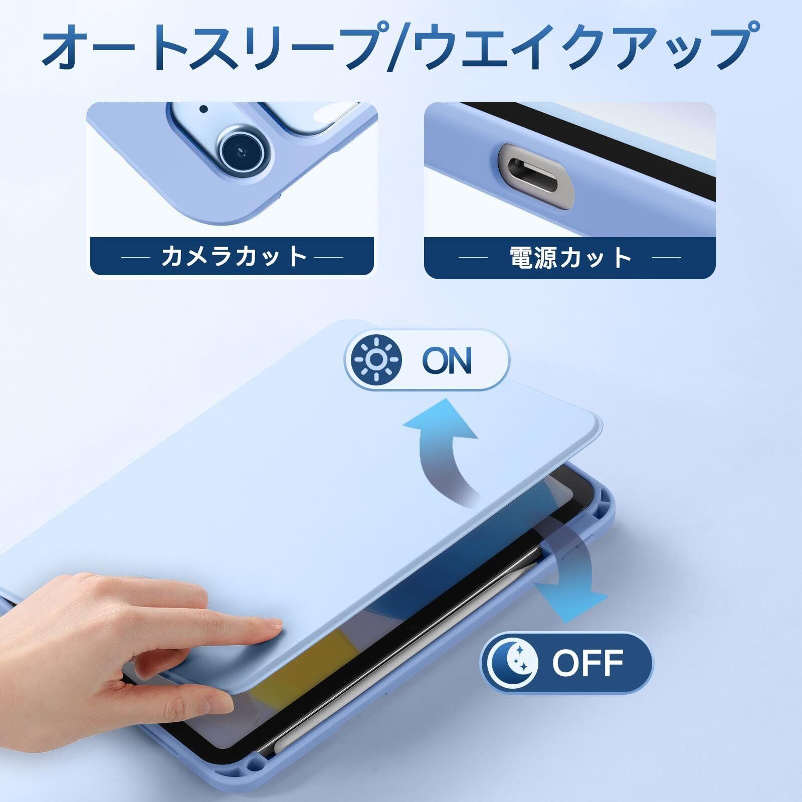 【オートスリープ/ウェイク機能】保護カバーにはオートスリープ&ウェイクアップ機能が搭載されており、デバイスが自動的にスリープ&ウェイクを切り替えため、バッテリーの消耗を抑えながら使用時間を向上させることができます。
