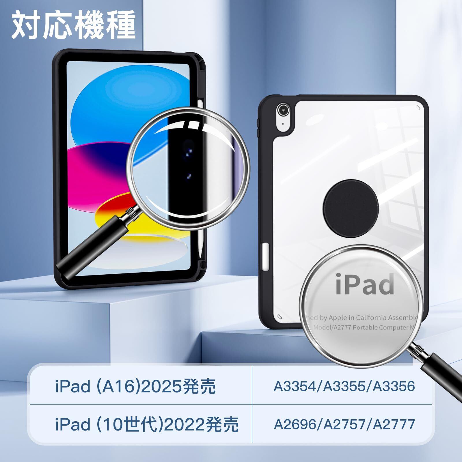 【対応機種】対応iPad 11世代/10世代 ケース iPad(A16)11インチ 2025/10.9インチ 2022通用です。モデル番号:A2757 / A2777 / A2696。他のiPadモデルと互換性がありません。※ご注意ください:本体とPencilは含まれておりません。