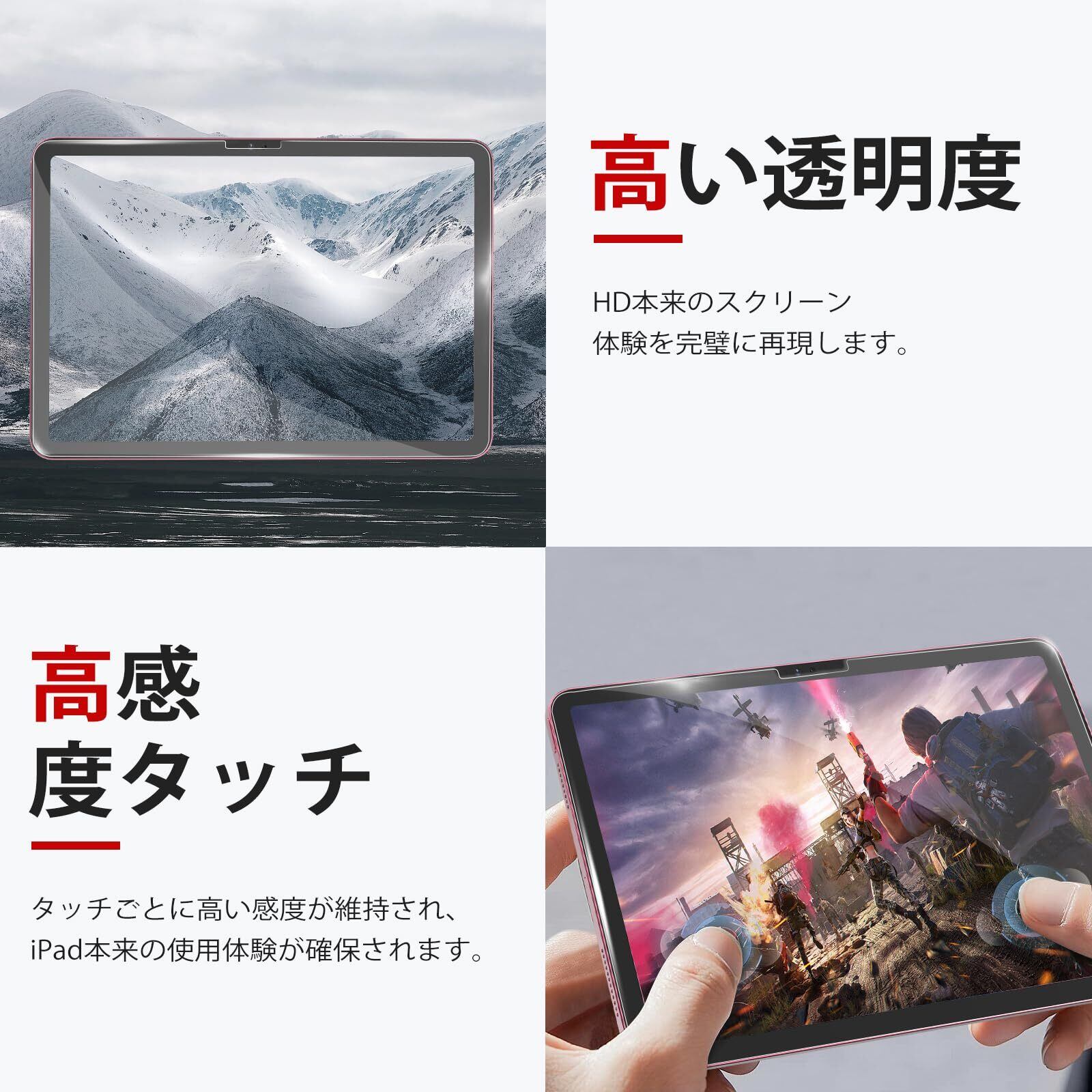 [高感度]:0.33mmの超薄型なので、タッチごとに高い感度が維持され、遅延といった現象が現れず、iPad本来の使用体験が確保されます。